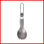 【軽量×コンパクト】耐食性のあるチタニウム、ハンドルにさびに強いステンレス鋼を使用した先割れスプーン。全長約150mmながら折りたたむことで、コンパクトに収納できる。カラビナを加えて、日常用にもアウトドア用にも適用します。