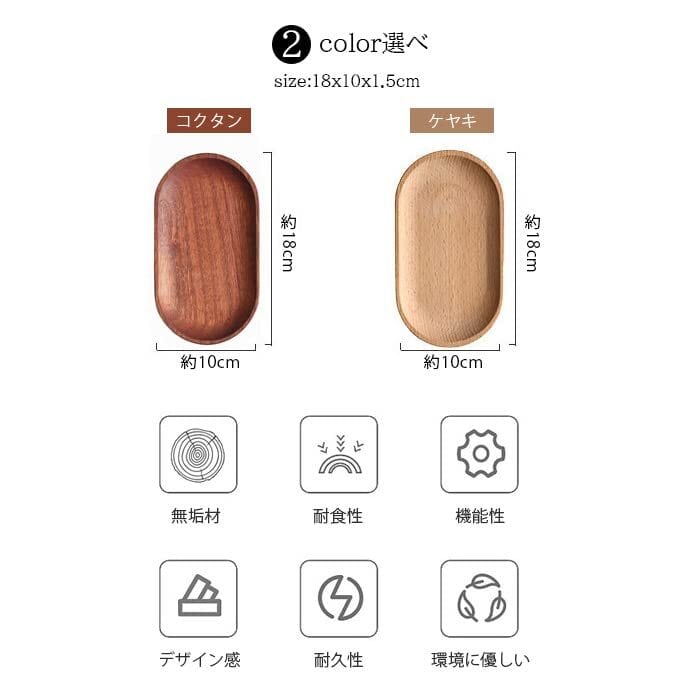 カフェトレー 木製 トレイ 小物入れ トレー 北欧 ミニトレイ お盆 天然木 おしゃれ トレー 小皿 マルチトレイ プレート マルチトレイ キャッシュトレイ (18x10cm, ケヤキ)