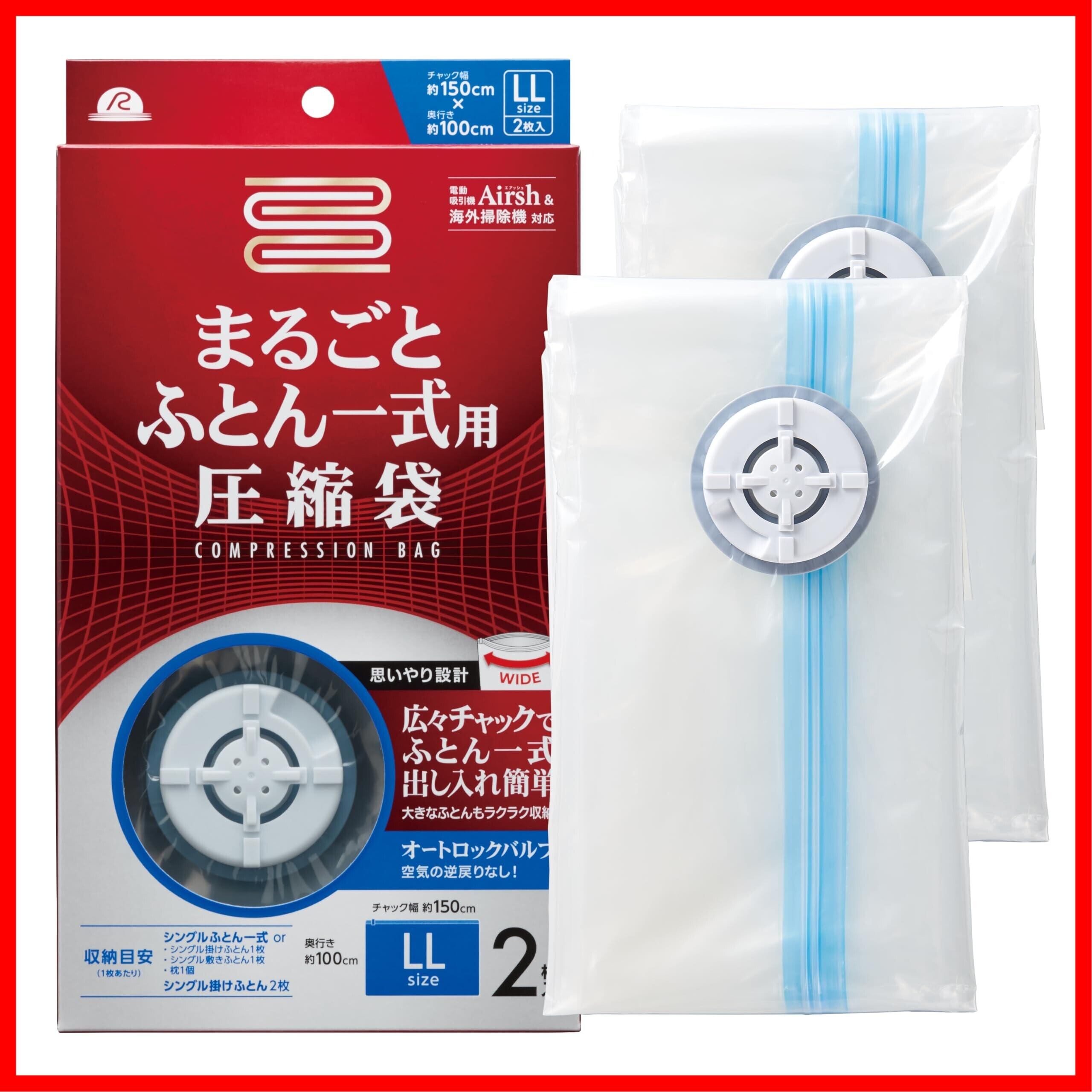 アール(R) まるごとふとん一式 圧縮袋 (バルブ式/繰り返し使用可能) 大きな布団もラクラク収納 (まるごとふとん一式用 2枚入り / 透明無地 / 150×100cm) RE-003 | hananoki