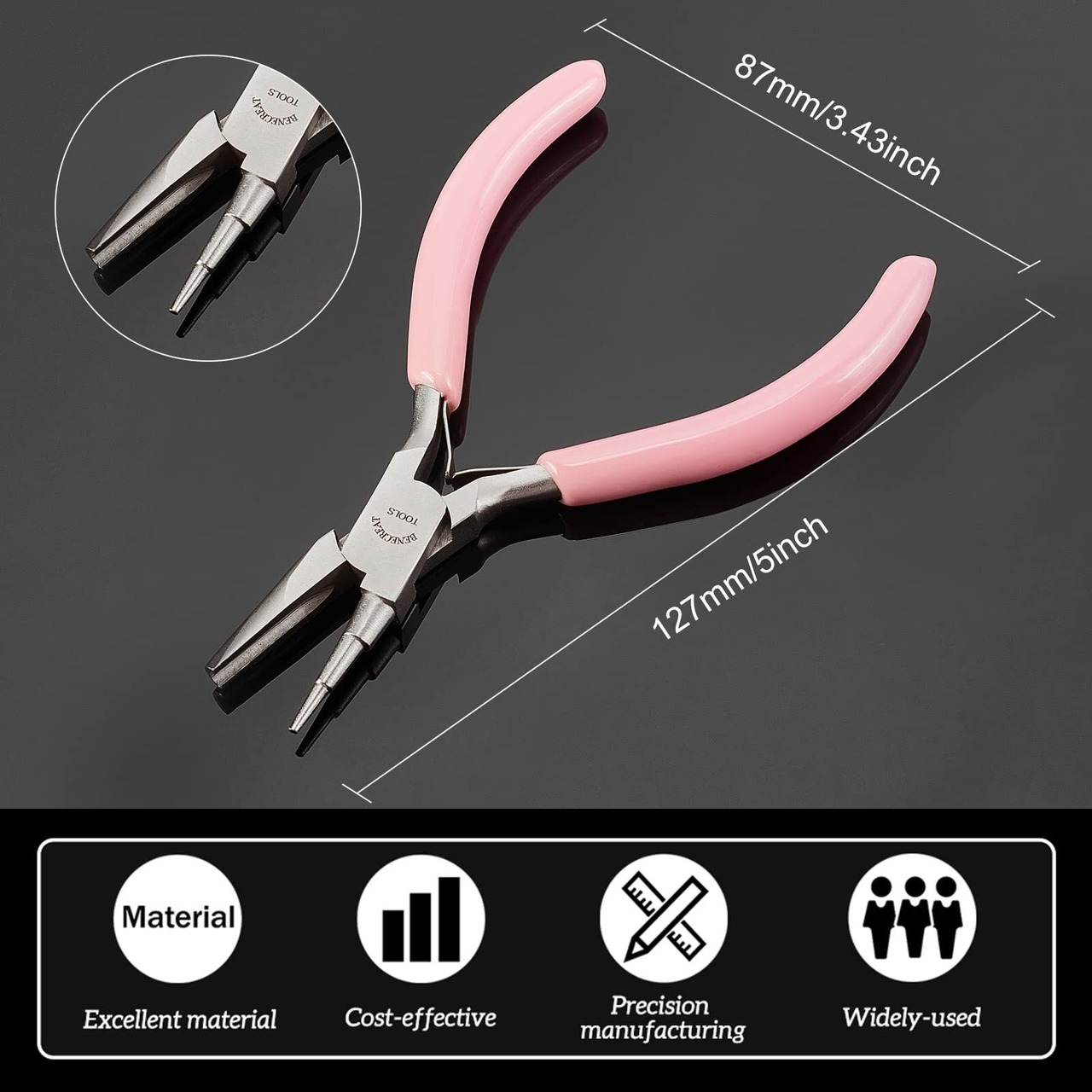 BENECREAT ジュエリーペンチ 凹型&丸型ノーズ ワイヤーループ ペンチ プライヤー ワイヤー曲げツール 手芸ペンチ 手芸用工具 アクセサリ用工具セット収納ケース付 手作り アクセサリー ビーズ 製作 クラフト ハンドメイド DIY 道具 ピンク