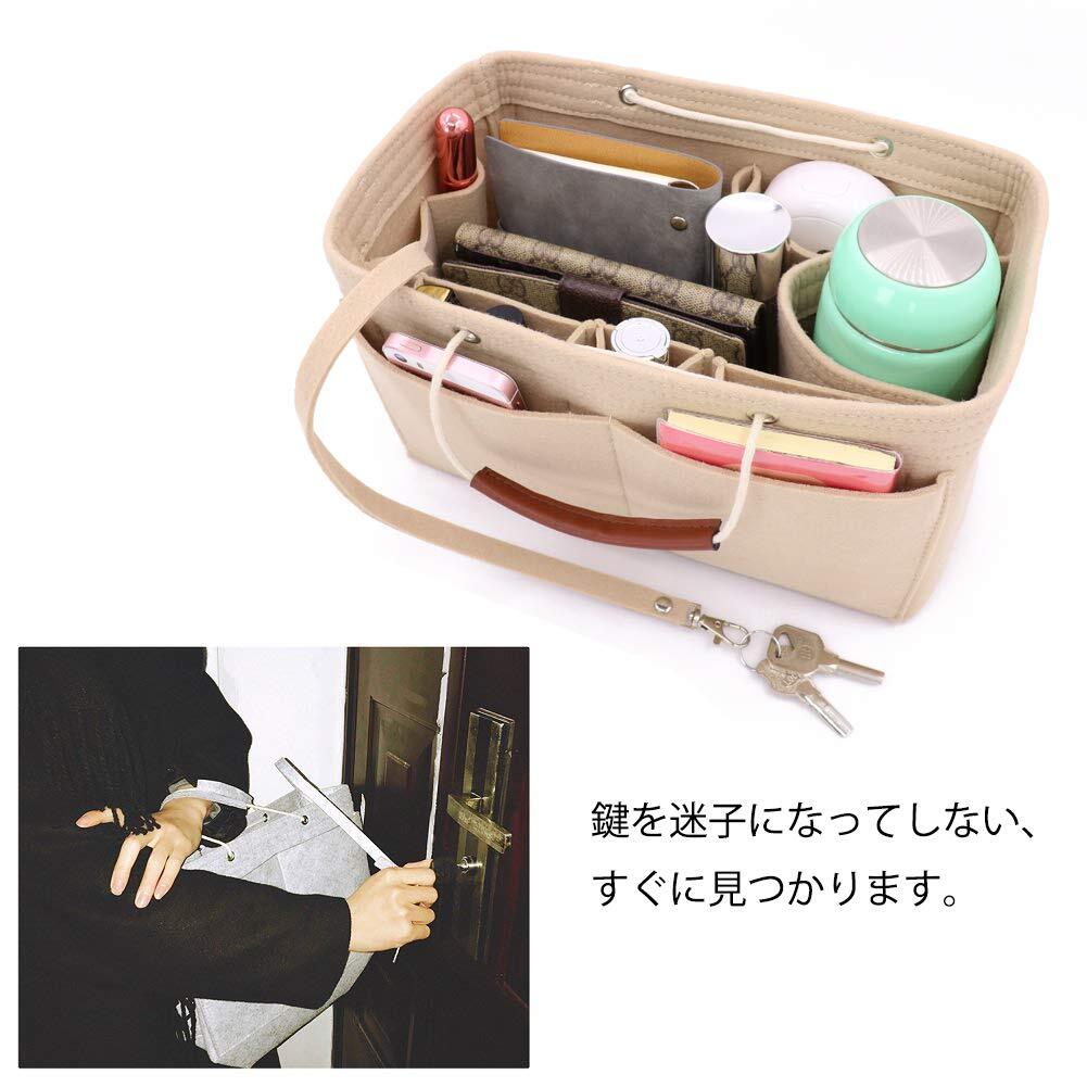 【多機能ポケットで整理整頓をサポート!】 : さまざまなサイズのポケットがあり、小物や化粧品、電子機器などを用途に応じて収納できます。フェルト素材を使用しているため、柔らかくて扱いやすく、バッグの中をすっきりと保つことができます。あなたのバッグの中身を見違えるほど整理整頓してみませんか?