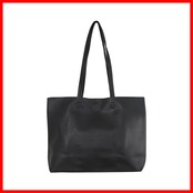 どんなシーンにも使える黒色無地のトートバッグです。PUレザーで柔らかく軽く、17インチのPCも入るぐらい大容量です。内側にはファスナーポケットが一か所あり鍵などの小物を入れるのに便利。マグネットで軽く閉められる仕様です。