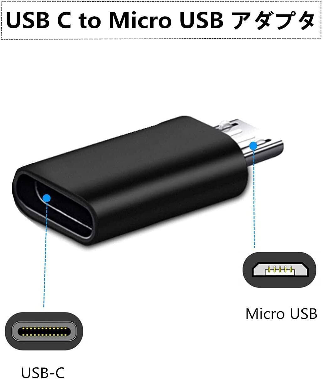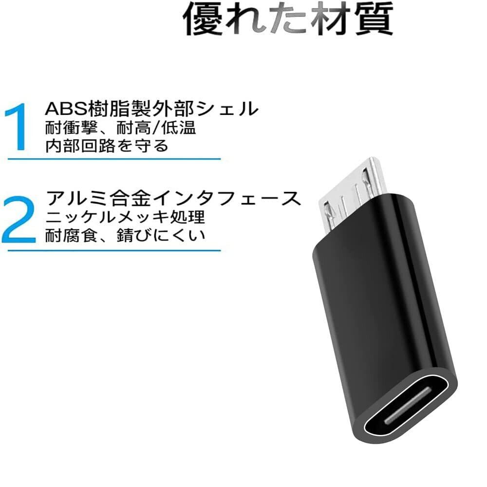 Type C to Micro USB 変換アダプタ 急速充電/データー転送/ 56Kレジス Type C to Micro USB 変換コネクタ (4個セット)充電コネクター スマホ 充電 データ伝送 軽量タイプ(ブラック)RuiMi