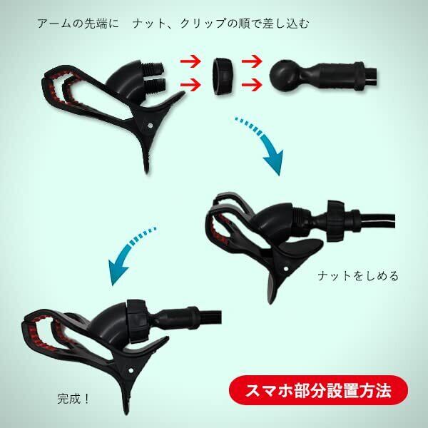 クリップ下のジョイントは360°対応で好きな角度に自由自在調整可能となります。