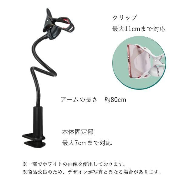 360°回転可能で自由に調整できるスマホスタンドです。 机やイス、ベッドなどに設置できあらゆるシーンで大活躍します。 クリップでしっかり固定でき安心して使用できます。 クリップ下のジョイントは360°対応で好きな角度に自由自在調整可能となります。 【商品仕様】 カラー ブラック