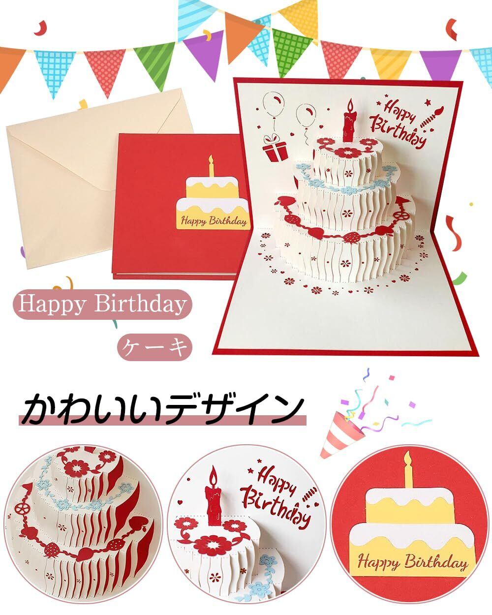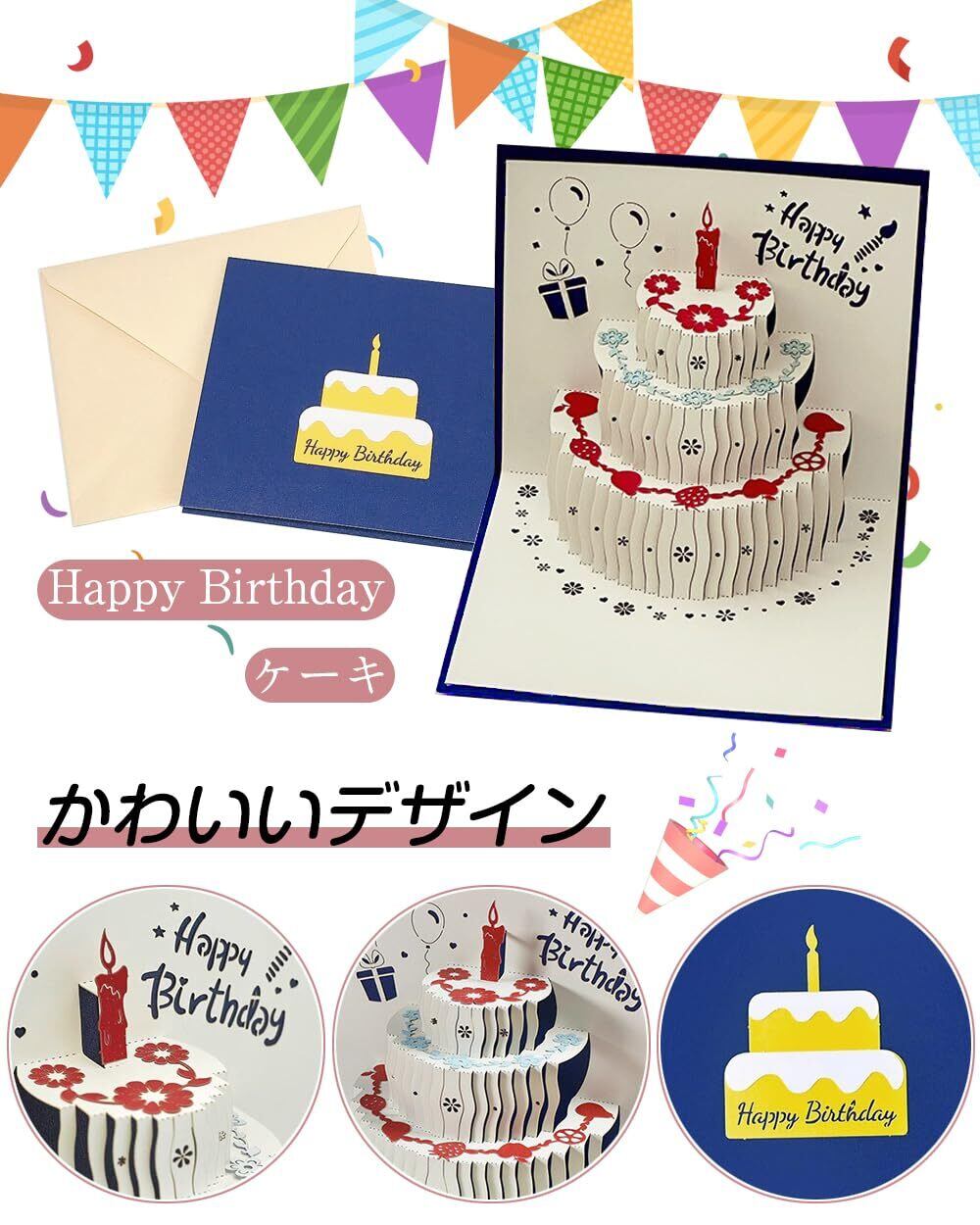 バースデーカード 3枚セット 3D立体 誕生日 メッセージ ポップアップ グリーティング バースデ カード お誕生日 祝い 感謝 封筒付き (タイプD)