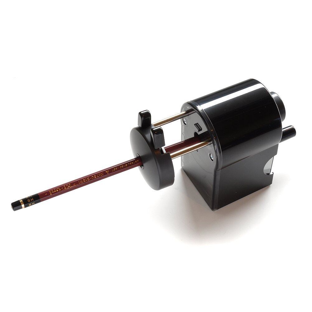 事務用、学童用の手動鉛筆削りです。安定感のあるスムーズな鉛筆削りができます。黒を基調とした、あきのこないシンプルなデザインで、スペースの場所をとらないコンパクトなサイズです。