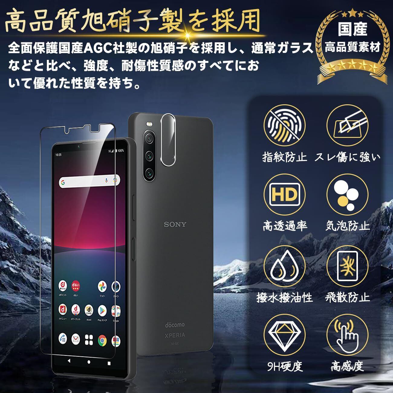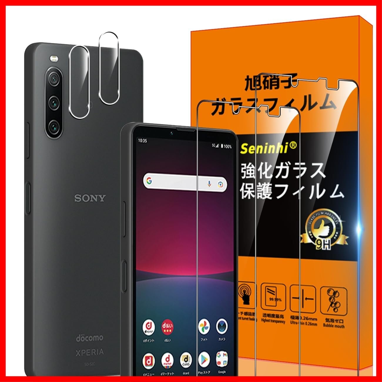 Xperia 10 IV 5G SO-52C SOG07 フィルム 指紋認証対応 【Seninhi 2+2枚セット: 2* Xperia10 IV 強化ガラス + 2* Xperia 10 IV レンズ保護フィルム 】 Xperia10IV ガラスフィルム 指紋ロック解除対応 ウィッシュ 高光沢 さらさら 保護フィルム 液晶 ケース カバー 日本旭硝子素材採用 Touch対応