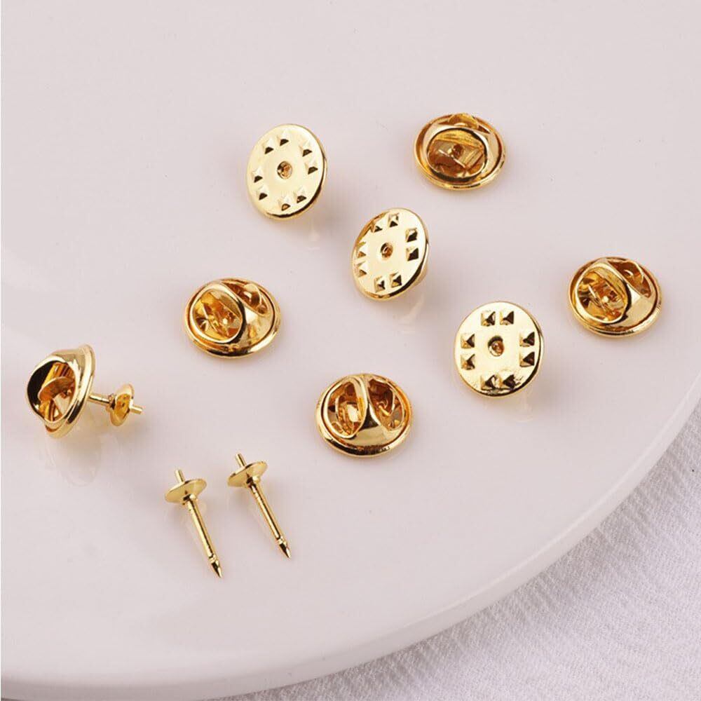 ESJNNK ピンバッジ 留め具 50個セット 直径11.5mm 蝶タック金具 キャッチ金具 ゴールデン バタフライ型クラッチ 土台の広い針 パーツ ピンズ 服飾小物のDIY 貼付用 | hananoki