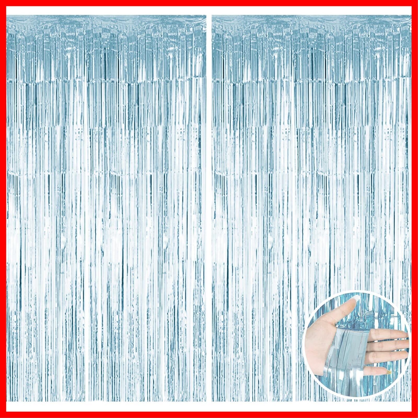サムコス タッセルカーテン 2個セット 100cm*200cm キラキラ フリンジカーテン 背景 明るい光沢 誕生日 結婚式 忘年会 パーティー 装飾 華やかな金属感 お部屋の装飾 (ライトブルー)