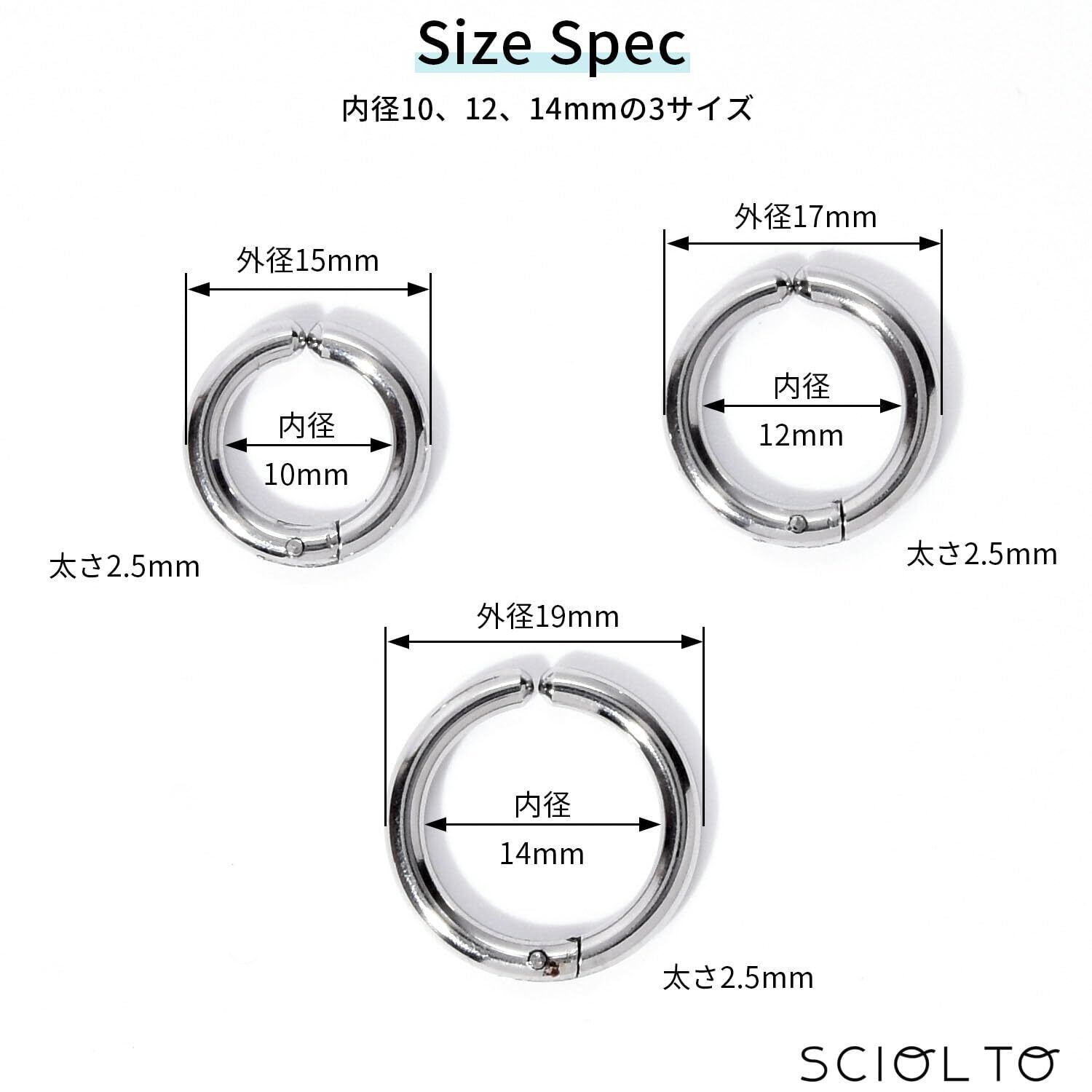 [SCIOLTO(ショルト)] ピアス穴不要 ノンホールピアス フェイクピアス イヤリング イヤーカフ リング メンズ レディース
