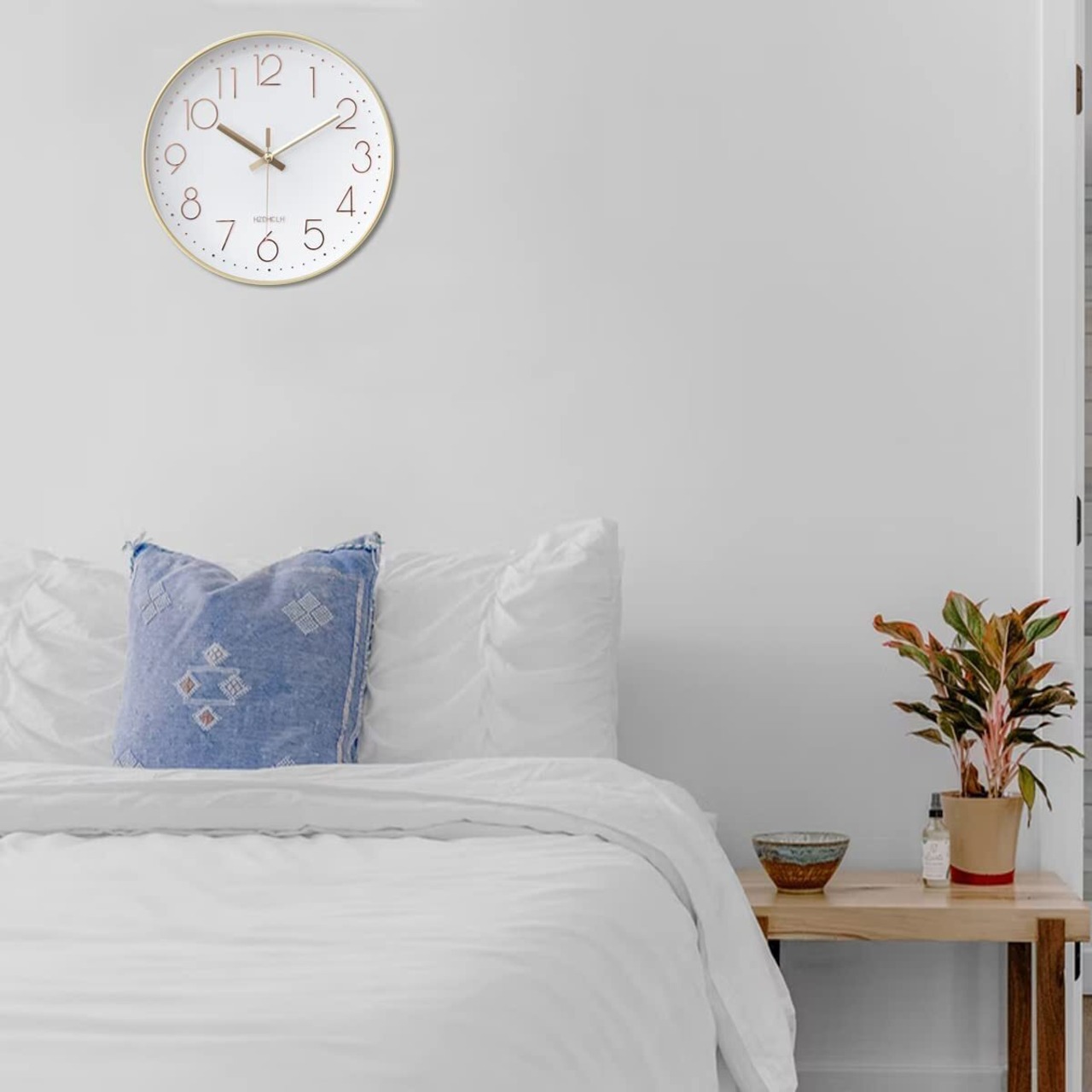 【機能性と美しさの両立!】 : 連続秒針仕様で、動きが滑らかで気になる音もありません。静音設計は、寝室やリビングルームに最適です。また、夜間に自動で秒針が停止する機能も搭載されており、静かな夜をしっかりサポートします。