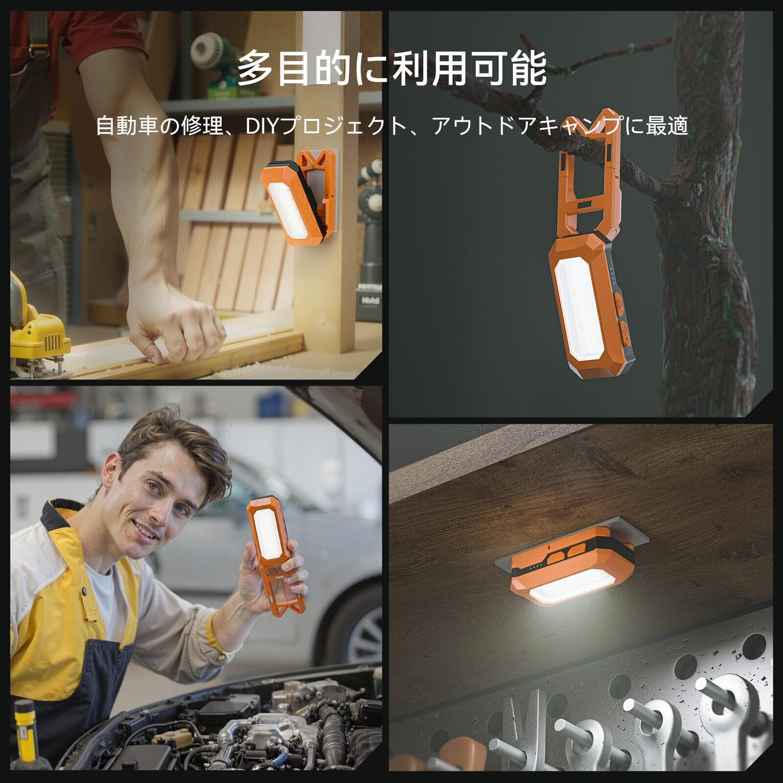 「この『作業灯』をぜひお試しください。多機能で使い勝手抜群のこのライトは、あなたの作業を一層快適にし、安全にサポートします。この機会にぜひお求めいただき、便利な作業ライフを楽しんでください!」
