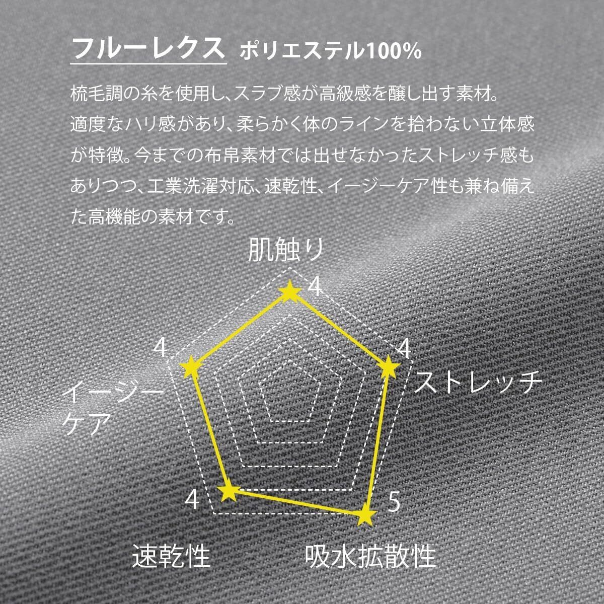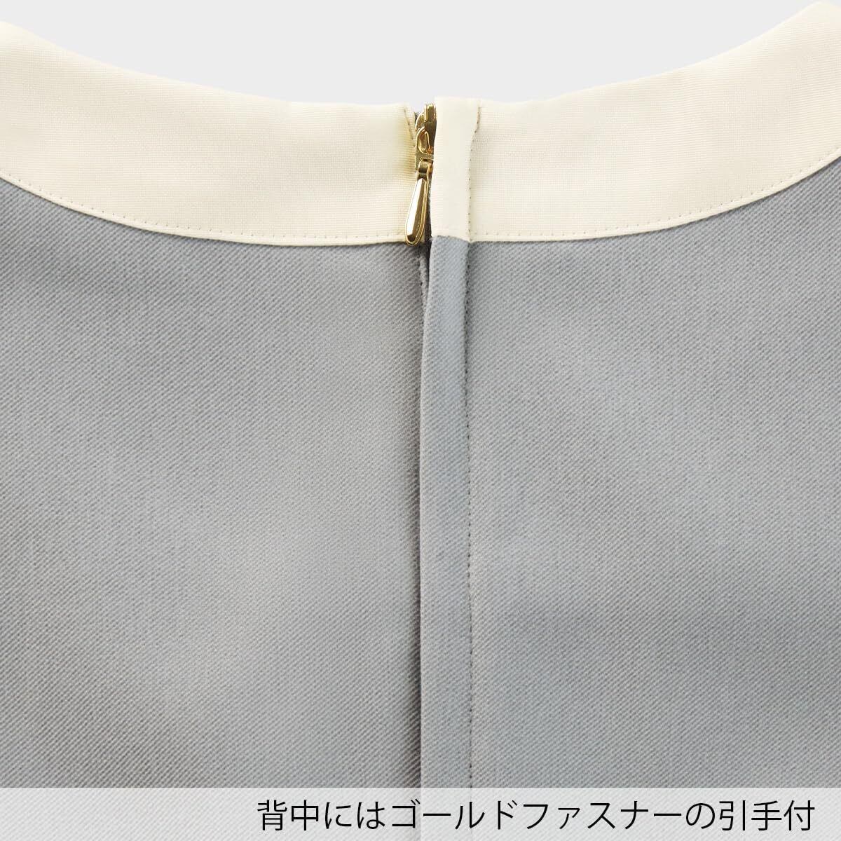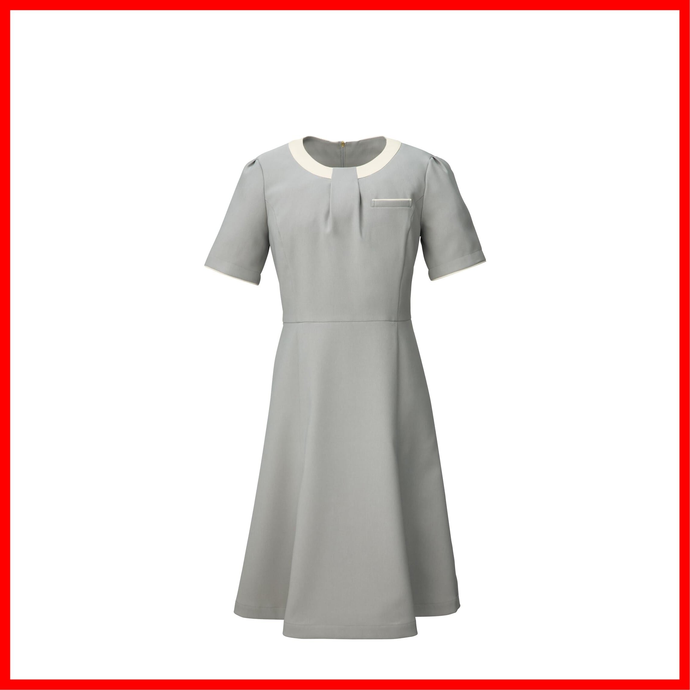 首まわりのデザインが印象的なおもてなし向けワンピース。使用しているフルーレクスは、今までの布帛素材では出せなかったストレッチ感もありつつ、工業洗濯対応、速乾性、イージーケア性も有する素材です。スカーフがなくてもフォーマルな印象をつくる襟元は、ジャケットを羽織った際もお顔まわりのアクセントに。スカート部分はほどよいマーメイドシルエットで、女性らしさを演出しています。メディカルユニフォームでは珍しい上品なツイード調の素材のワンピースです。