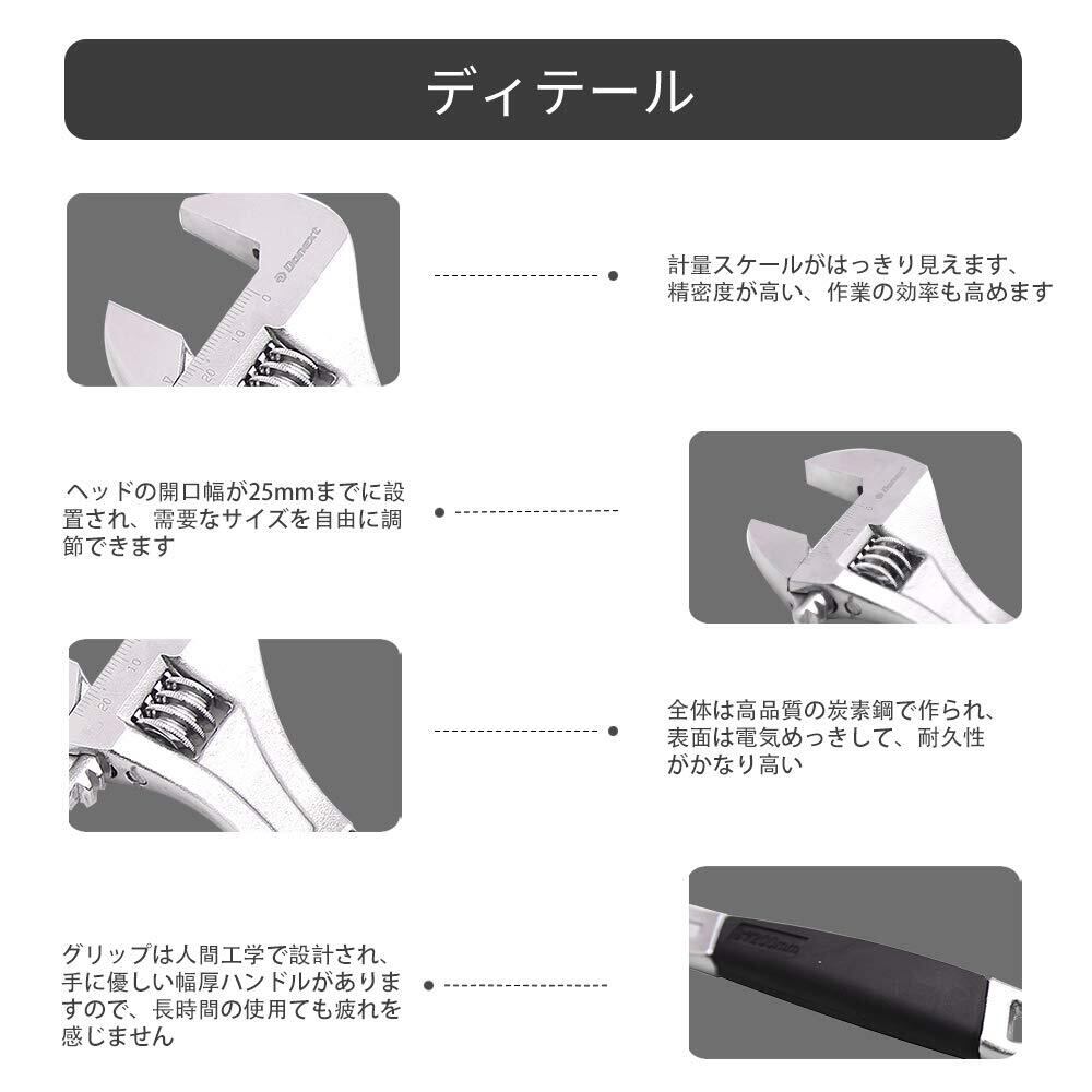 【使用簡単】全長200mm(8")で、ヘッドの開口幅は25mmまでに調整され、需要なサイズを自由に調節できます。狭い箇所でも使いやすいです。機械修理、自動車修理、家庭のメンテナンス、工場内作業や建築現場からDIYまで幅広くご使用いただけます。