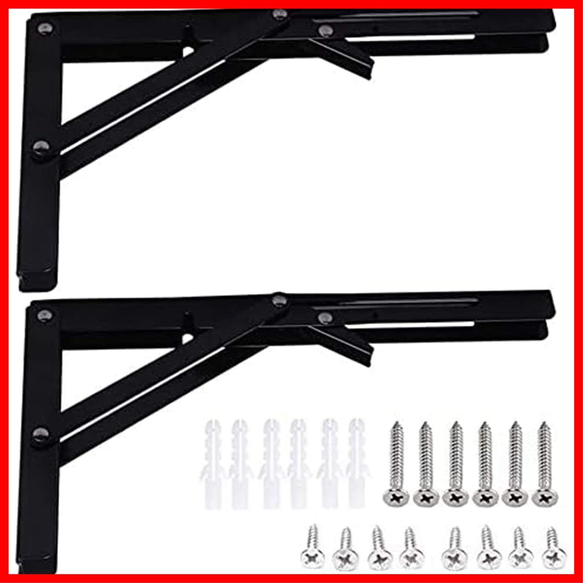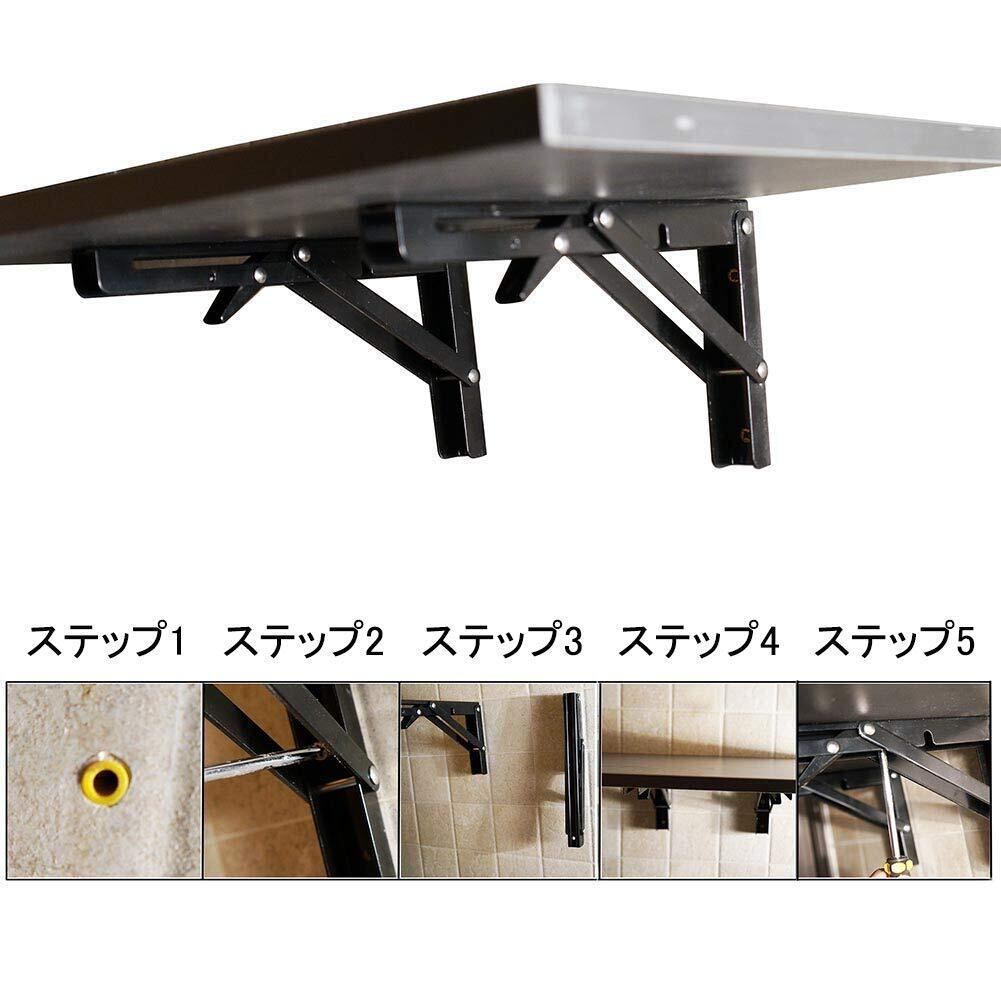 LUCKYBEE 2本セット 棚受け金具 L字型 棚支え ブラケット 折りたたみ アイアン 金具 耐荷重50kg 折畳みテーブルヒンジ 壁掛けテーブル(20cm, ブラック)