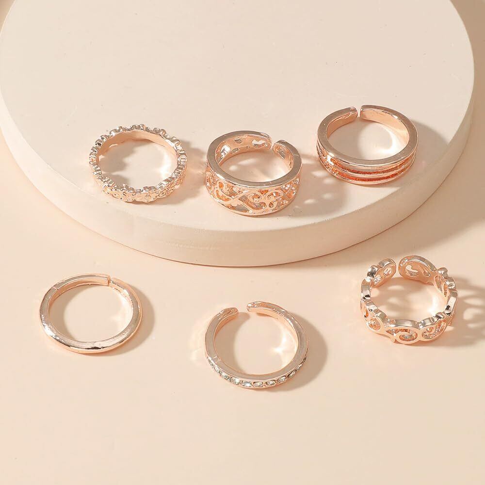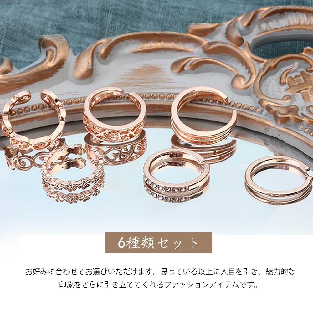 [YFFSFDC] 指輪 6個入り リング アクセサリー ファッションリング メンズ レディース 人気 セット 調節可能 おしゃれ シンプル シルバー
