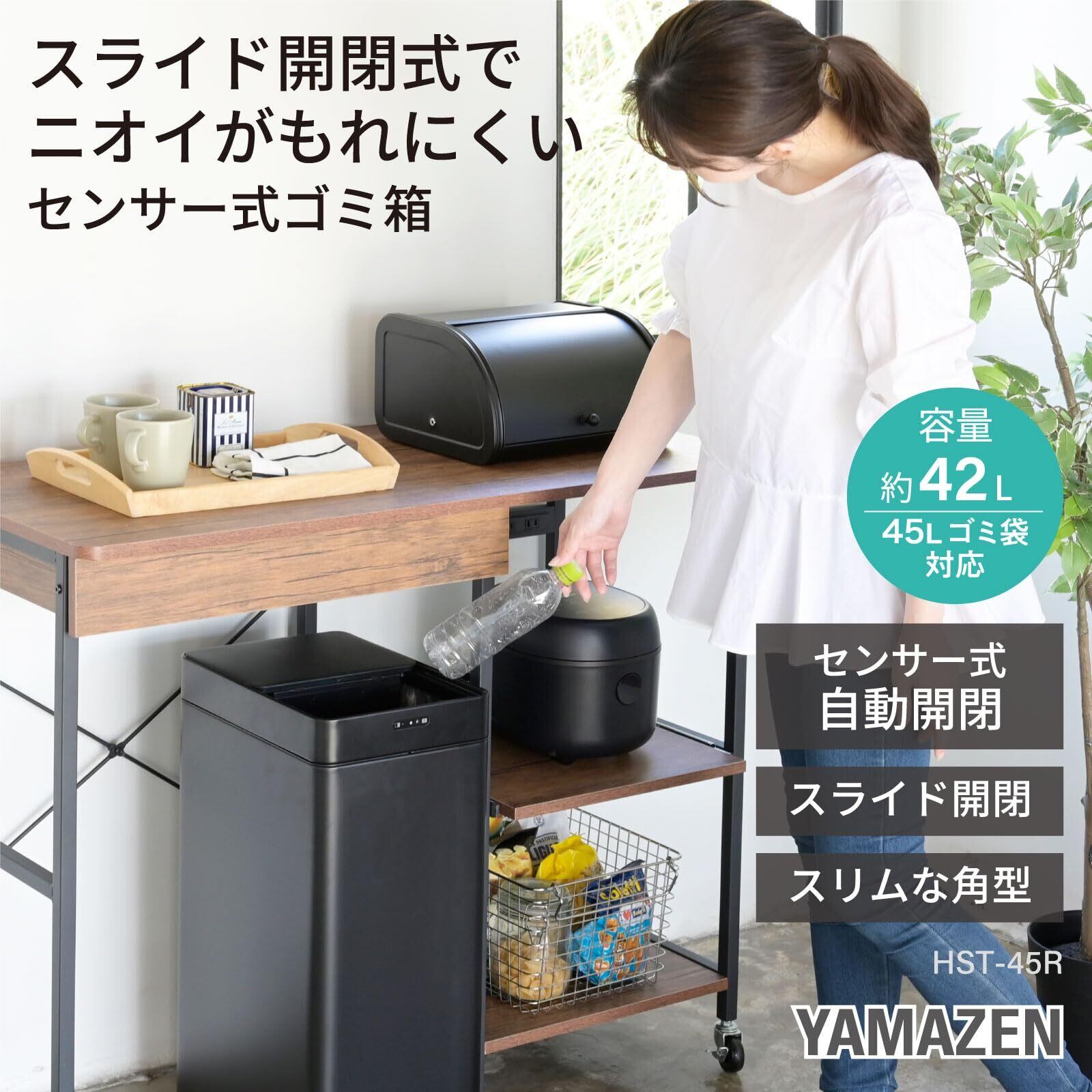山善(YAMAZEN) ゴミ箱 自動 スライド開閉 スリム センサー式 42L (45Lゴミ袋対応) 幅25×奥行34×高さ61.5cm ダストボックス キッチン ふた付き 電池式 ステンレス 完成品 ブラック HST-45R(BK) | hananoki