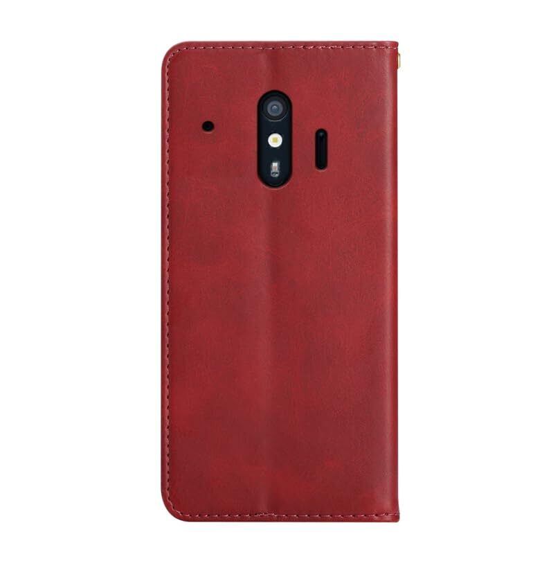 適用 らくらくスマートフォン me F-01L / F-42A ケース 手帳型 カバー PUレザー カード収納 財布型 耐衝撃 ケース マグネット スタンド機能付き 5色 (レッド)