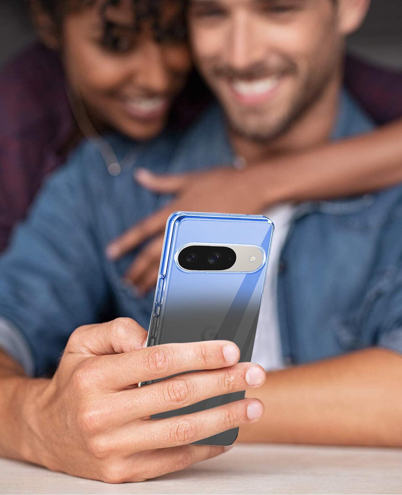 Google Pixel 9 / Pixel 9 Pro ケース クリア 薄型 TPU 耐衝撃 グーグルピクセル 9/9 Pro ケース グラデーション色 黄ばみ防止 擦り傷防止 軽量 人気 スマホケース カメラ保護 ワイヤレス充電対応 ブルーブラック