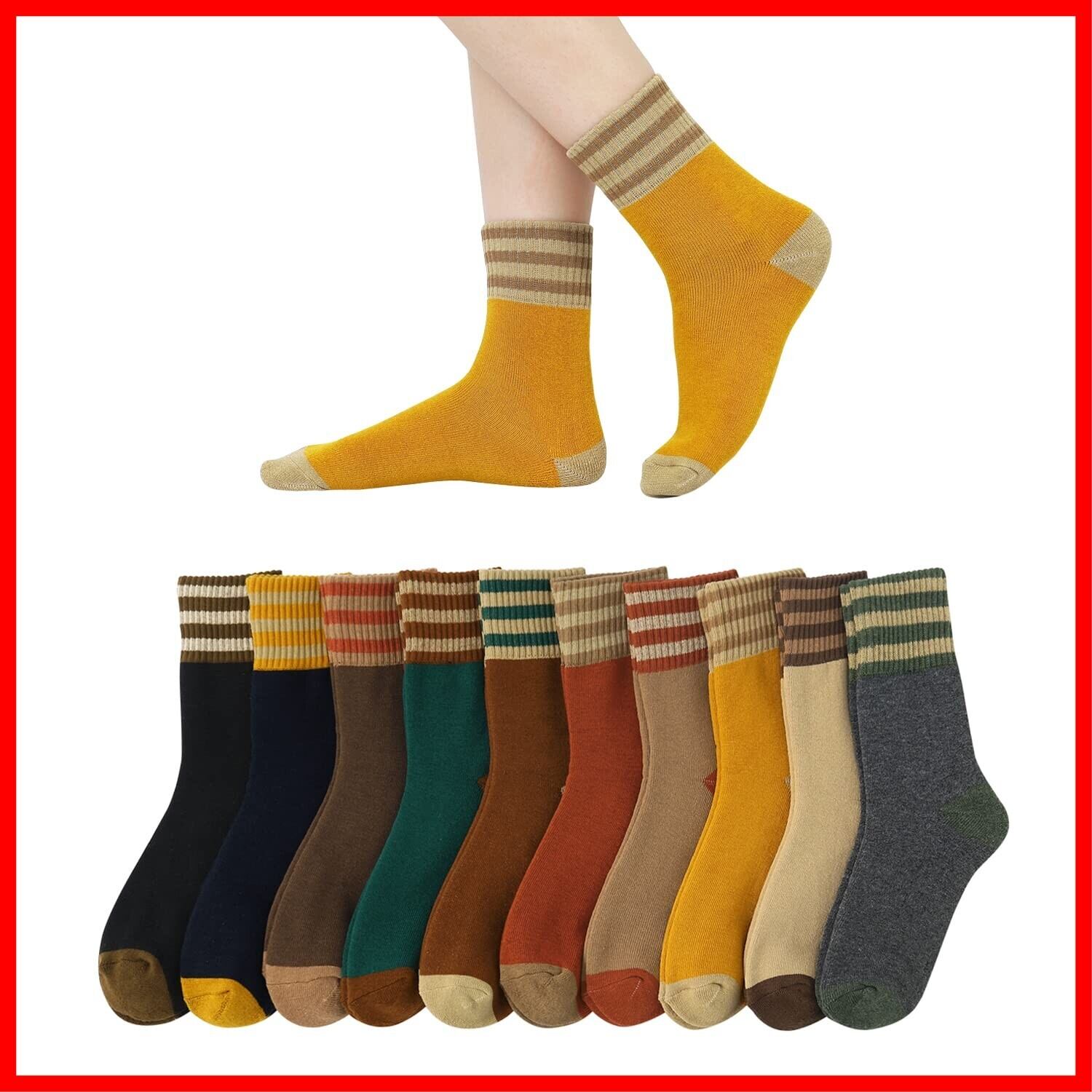 [DAMILY] 靴下 レディース 暖かい 冬くつした レディース 防寒 10足セット あったか靴下 厚手 裏起毛 女性用 カジュアル カラフルソックス おしゃれ アウトドア クルーソックス 保温性 22‐25㎝ 室内