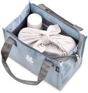 【おしゃれで使いやすいデザイン!】 : ライトブルーの色合いが爽やかで、デザイン性も兼ね備えています。小物の収納にも便利なポケットが付いているため、お弁当以外のアイテムも一緒に持ち運べます。ファッションとしても楽しめる、おしゃれなアイテムです!