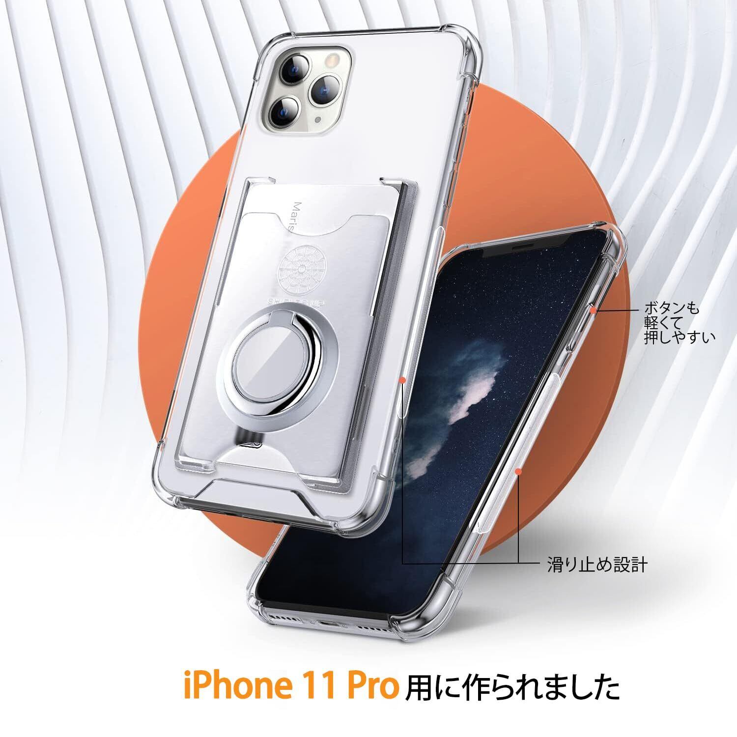 SHIELDS UP 互換品 ケース iPhone 11 Pro 用 ケース カード収納 背面ポケット リング付き スタンド機能 耐衝撃 透明 TPU カバー アイフォン11プロ 用ケース 5.8 インチ - クリア