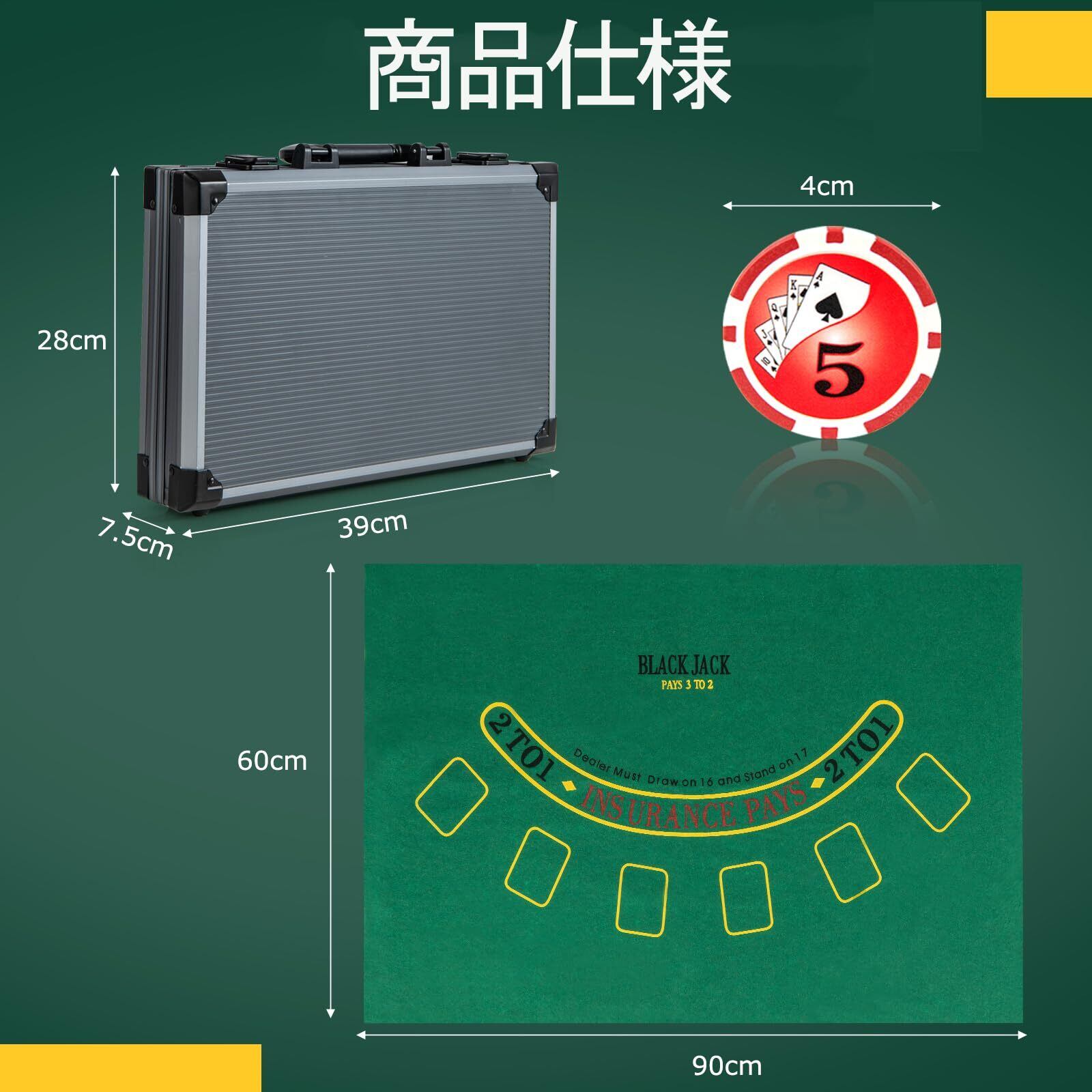【耐久性に優れた理想的なセット!】 : 素材には高品質なものを使用しており、長期間の使用にも耐える耐久性を誇ります。また、収納しやすいデザインとなっており、プレイ後はすぐに片付けられます。自分だけのカジノを作り上げることができる、便利なアイテムです。