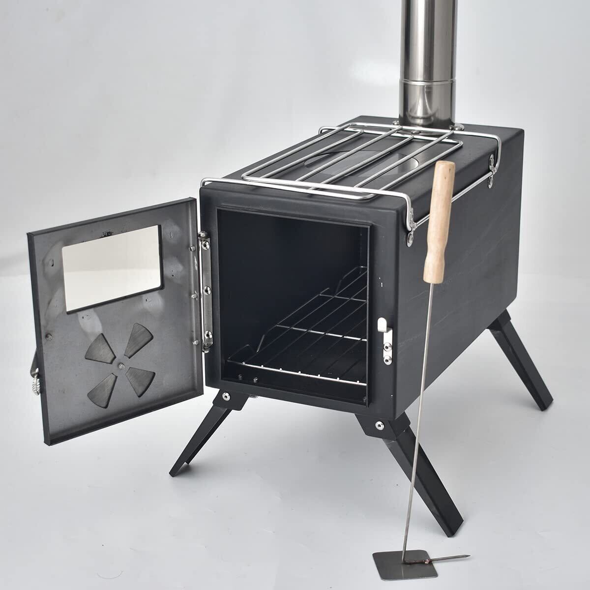 Anlik 薪ストーブ アウトドア調理 暖炉 キャンプ テント 煙突付き (ブラック/鉄製)
