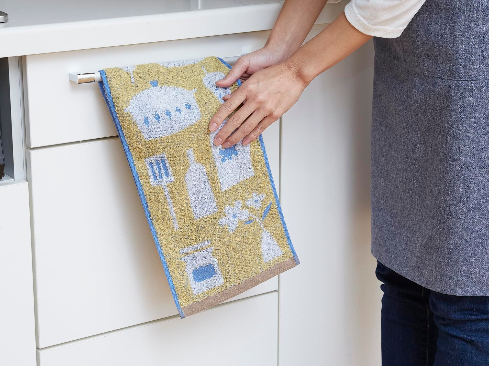 フェイスタオルの幅ではなかなか掛けられない、キッチンの引き出しの取っ手など、「そこにタオルが欲しかった」な場所に掛けられる、便利なサイズアイテムです。