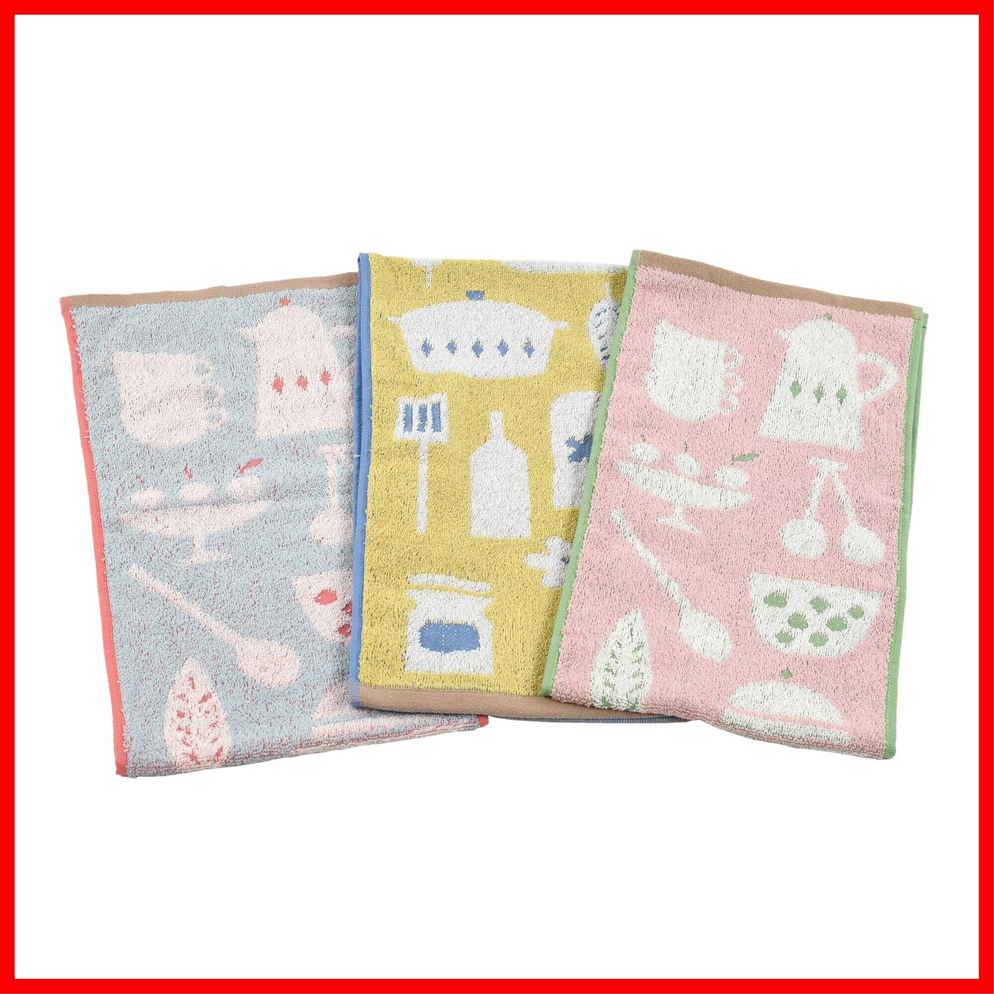 Kosugizen スリムフェイスタオル スリムなおてふきタオル キッチン 3色各1枚入 20×80㎝ タオルハンガーにちょうど良い 便利なサイズ 3枚セット ZGTF-1802-3 | hananoki