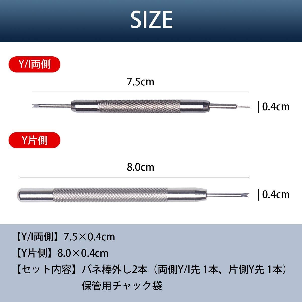 腕時計スチールバンド等のバネ棒外し2本セット(両側Y/I先1本、片側Y先1本)
