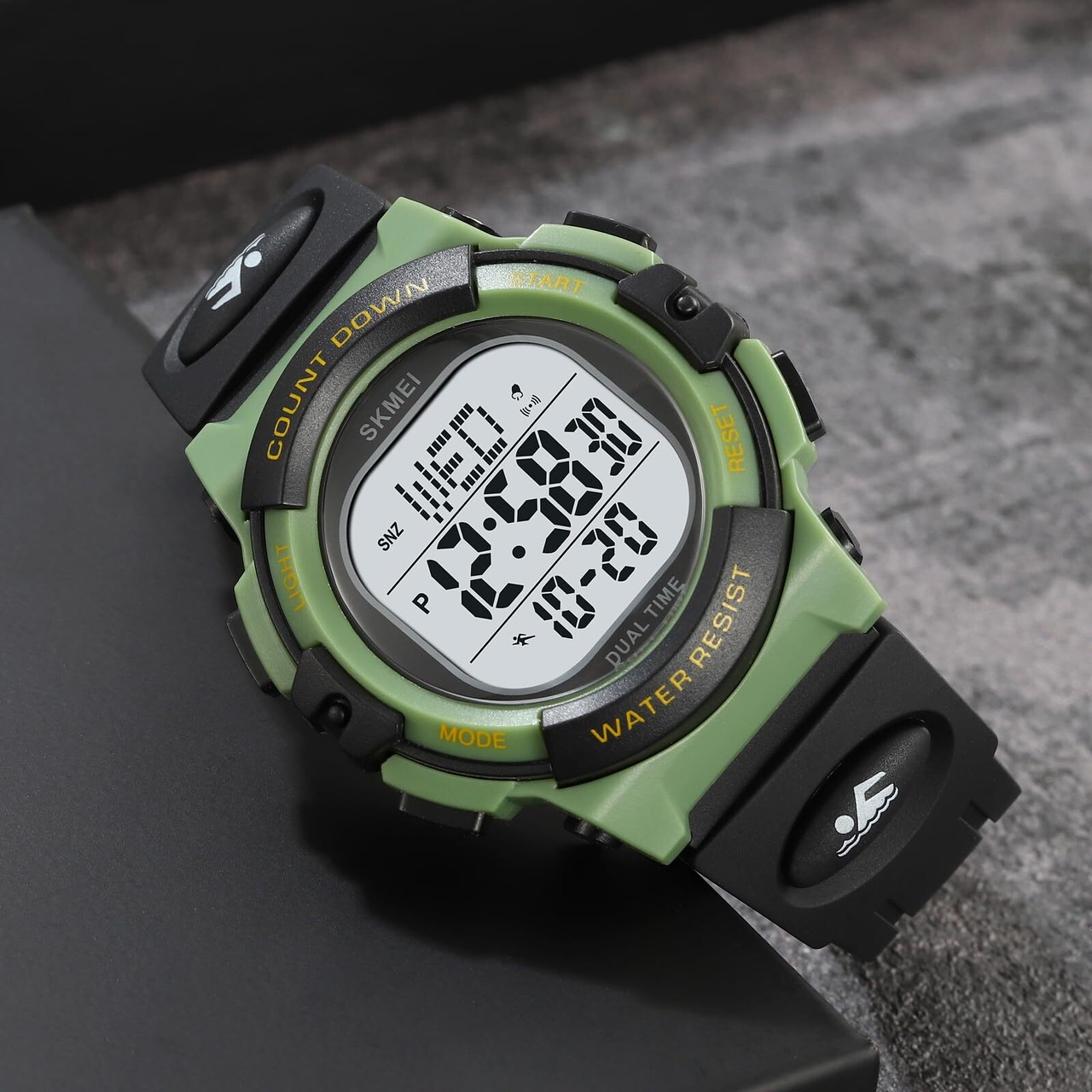 Timever(タイムエバー)多機能 子供腕時計 男の子 見やすいデジタル腕時計 ボーイズスポーツウォッチ キッズ用時計 防水 目覚まし時計 ストップウォッチ カウントダウン 日付曜日表示 (グリーン)