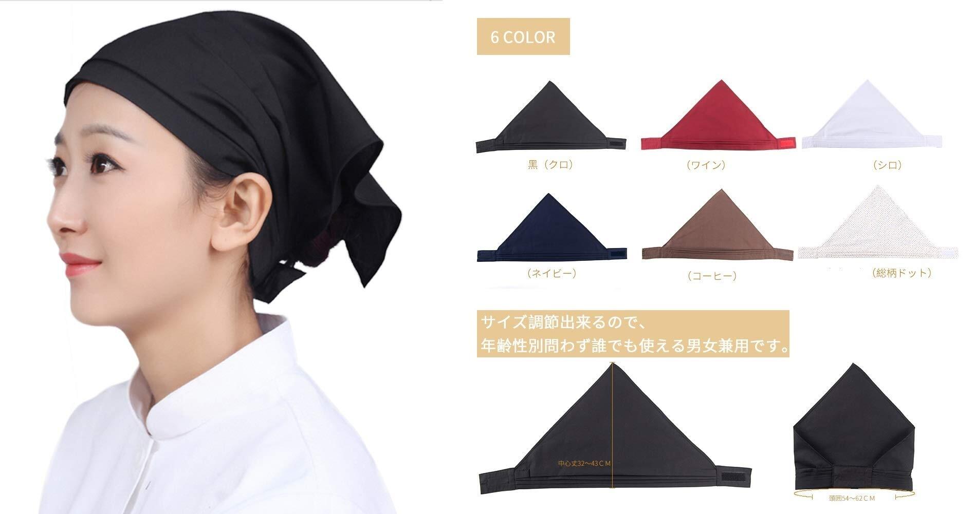 [OTAKUMARKET] 三角巾 シンプル 無地 大人用 男女兼用 カフェ 業務用 料理教室 調理実習 清掃 美容院 マジックテープ付き 簡単に取り付ける