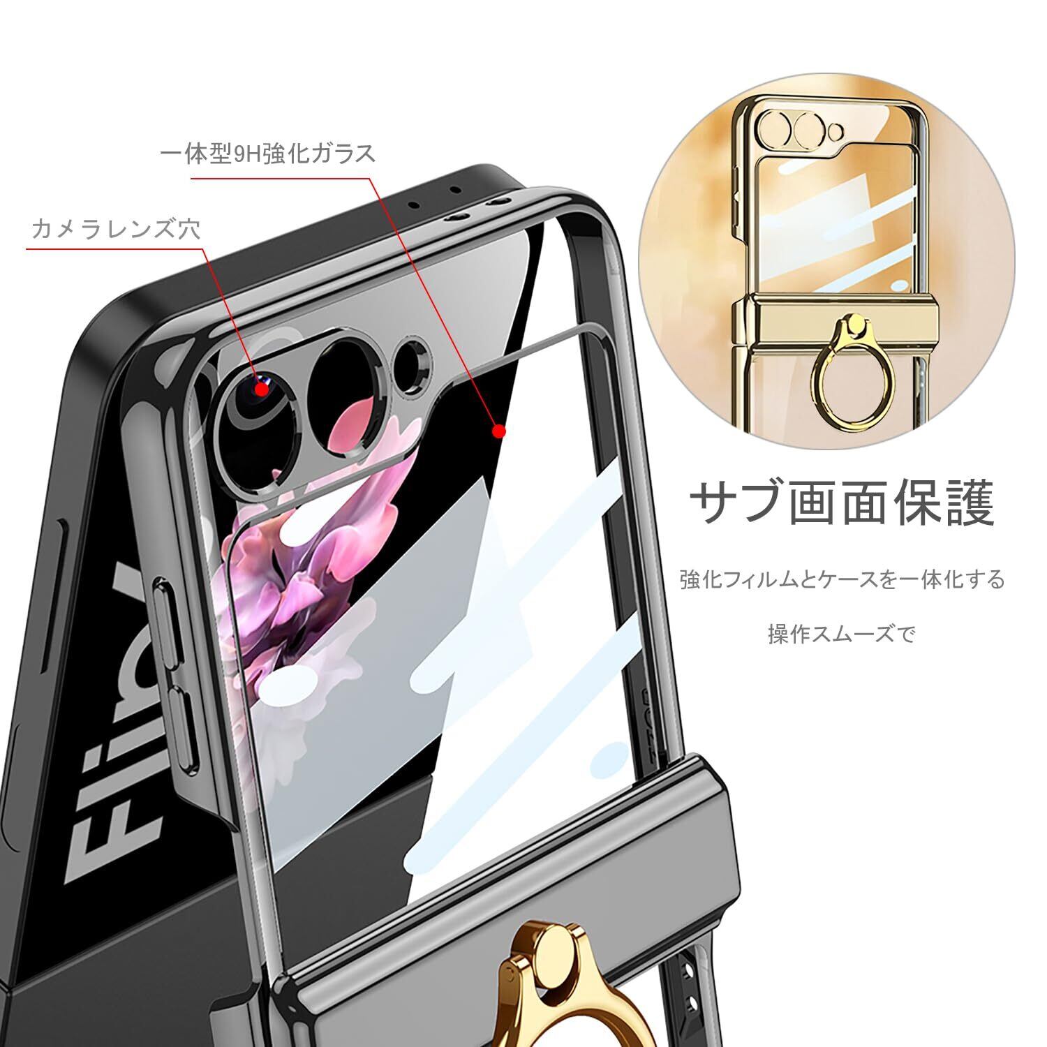 「互換性モデル」Samsung Galaxy Z Flip6 / SC-54E「6.7インチ」用 クリア リング付きケース。※ご注意:折りたたみスクリーン保護フィルムは含まれていません。