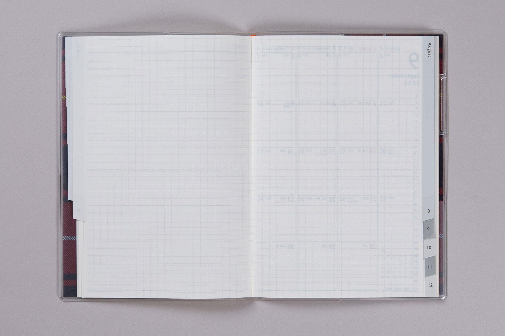 インデックス付きなので、開くのもカンタン!月ごとに横ケイメモと方眼メモが入っています。