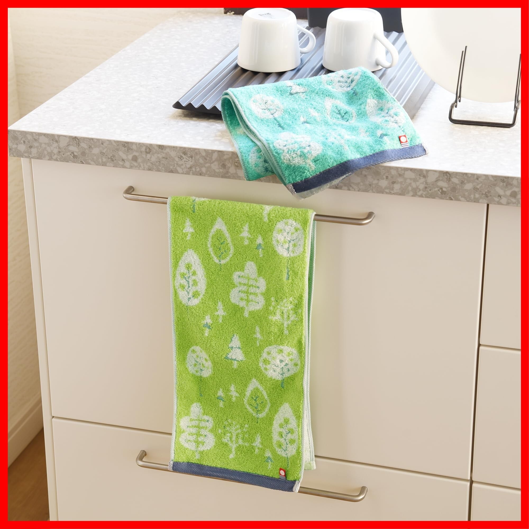 ・通常のフェイスタオル幅の半分のサイズなので、折らずにタオルハンガーに掛けられるスリムサイズ。ご家庭でのキッチンスペースなどでのご使用はもちろん、通常のフェイスタオルとしてもお使いいただけます。また、首にもかけやすいスリム幅なので、お散歩などの汗拭きタオルとしても大活躍!
