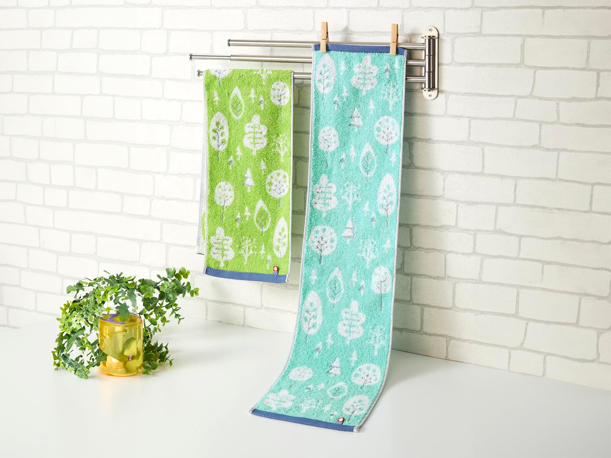 【スリムサイズのタオル】トイレやキッチンのおてふき用として使いやすい、タオルハンガーに折らずに掛けられるスリムサイズ。通常のフェイスタオルとしてもお使いいただける、コンパクトで機能的なタオルです。
