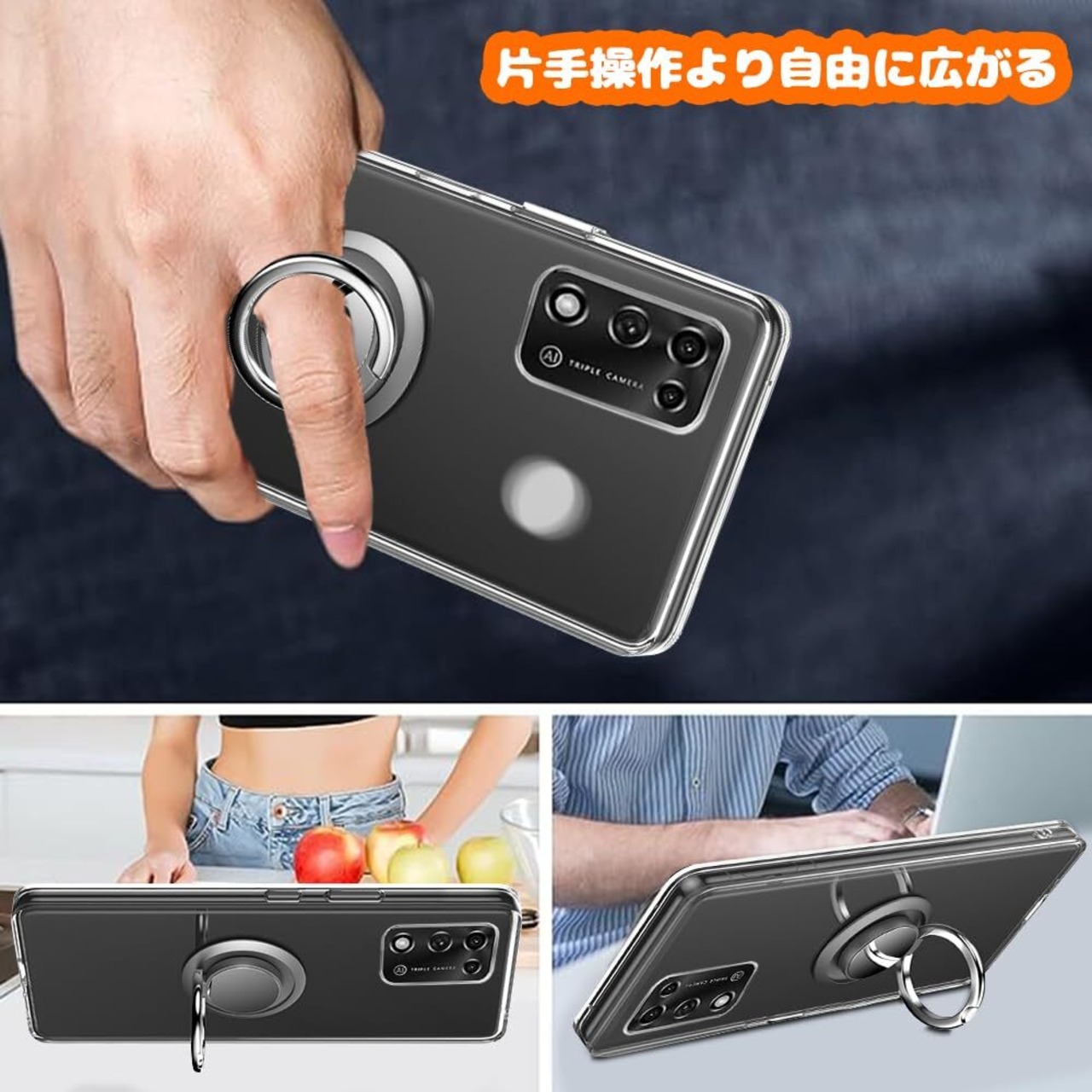 対応 ZTE Libero 5G III ケース A202ZT リング付き 透明 リベロ 5g iii/3 スマホケース リング クリア シリコン 薄型 スタンド機能 耐衝撃 耐久 滑り止め