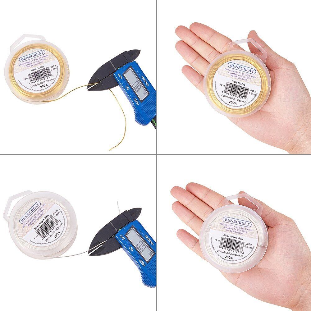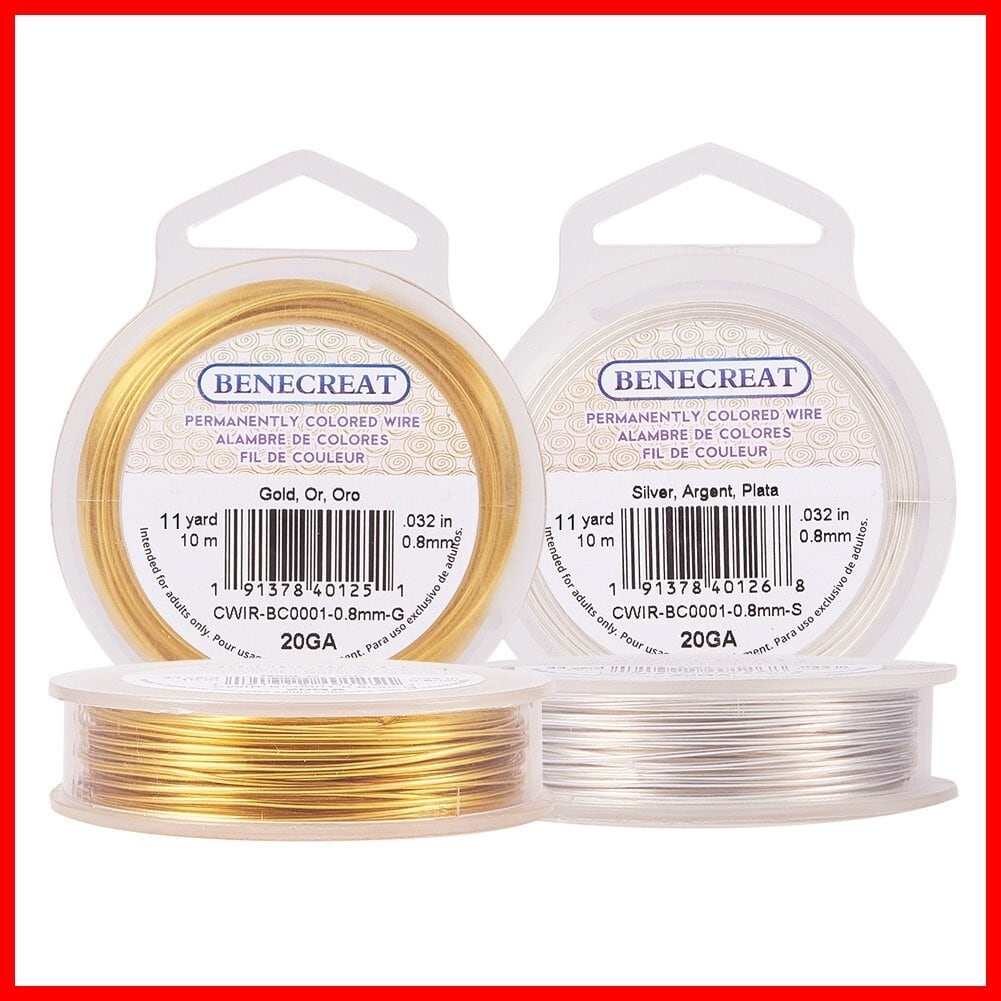 BENECREAT 2巻きセット0.8㎜アクセサリーワイヤー アートワイヤー 光沢 変色防止 クラフト銅線 ジュエリー作り 手作り ゴールド&シルバー