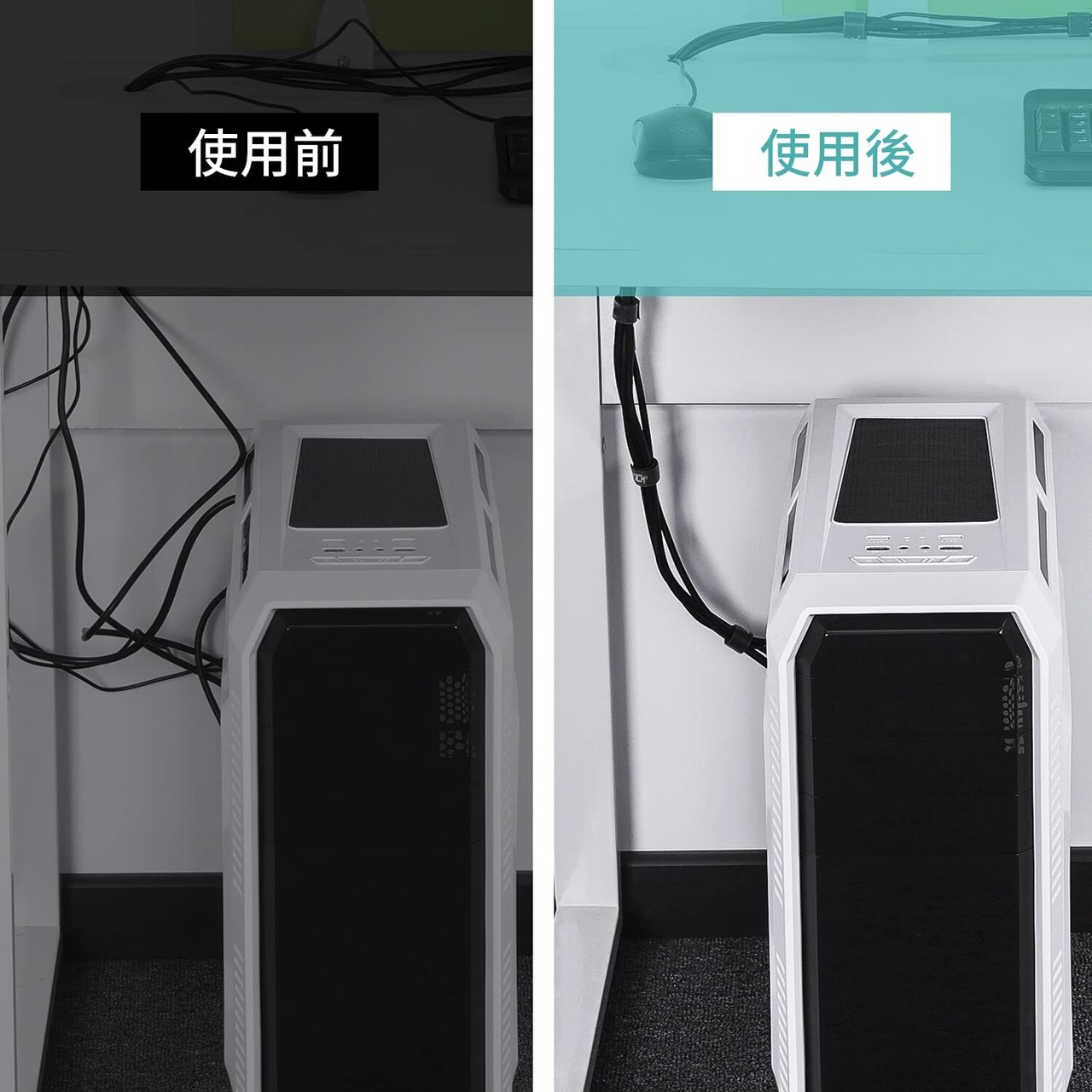 【手軽に使える簡単設計!】 : 面ファスナータイプなので、面倒な道具を使わずとも簡単に取り付けが可能です。また、必要に応じて自由にカットできるため、サイズ調整も簡単です。家庭やオフィスでのケーブル整理を手軽に実現して、スッキリとした空間を作りましょう!