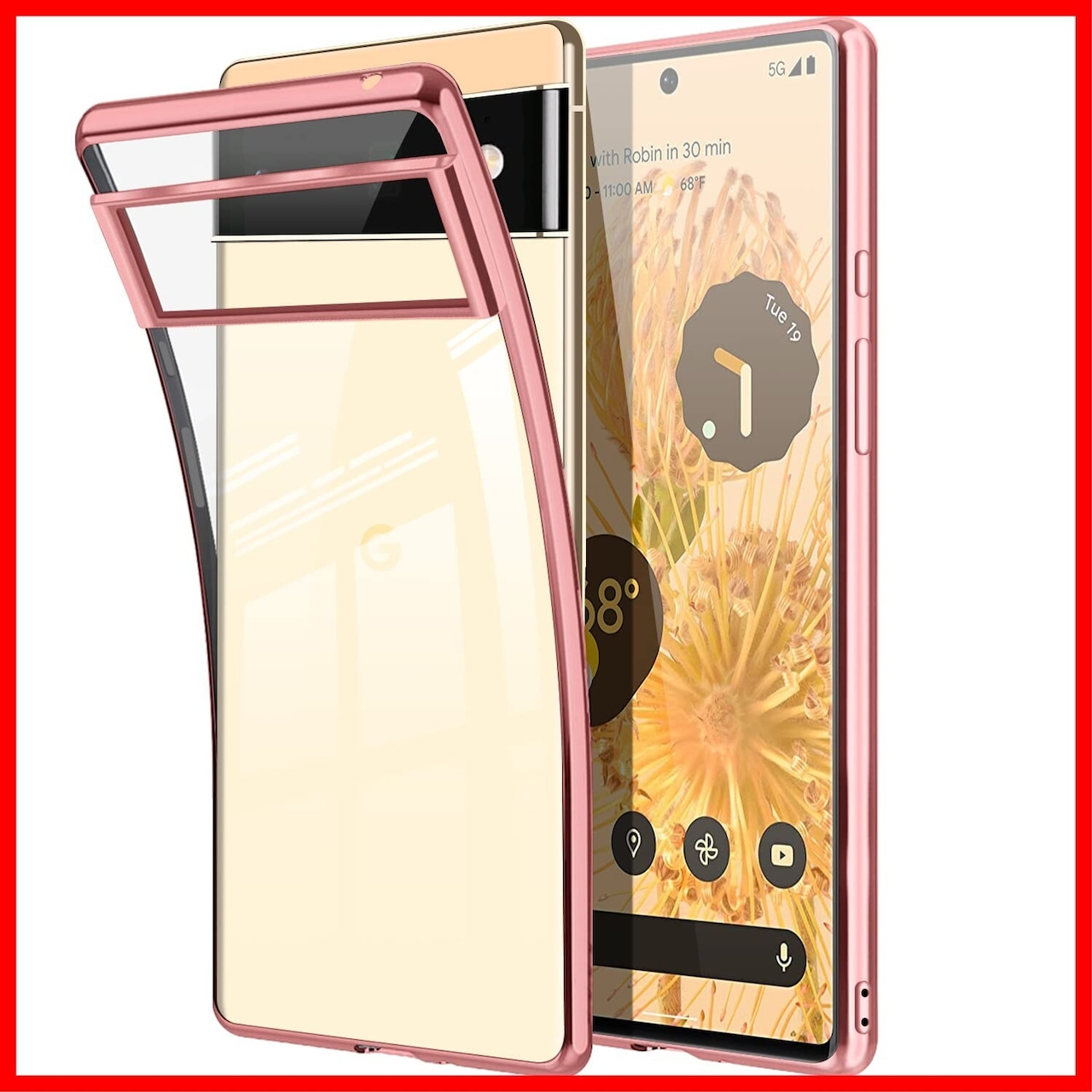 Pixel6 Pro ケース クリア pixel6 pro カバー スマホケース 透明 tpu スリム 薄型 シリコン 耐衝撃 ストラップホール ソフト 衝撃吸収 ピクセル6 プロ ケース ローズゴールド
