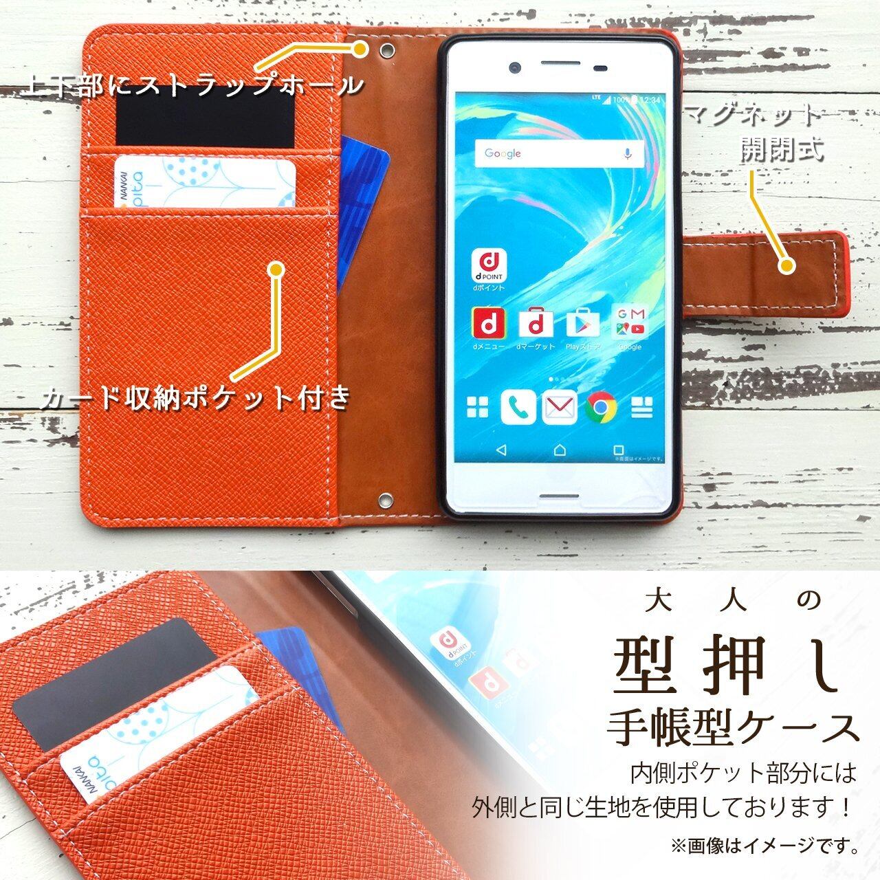 卓上ホルダで充電される場合は本ケースを外してからご利用ください。 手帳の材質:PUレザー(合皮)マグネット式でかんたん開閉