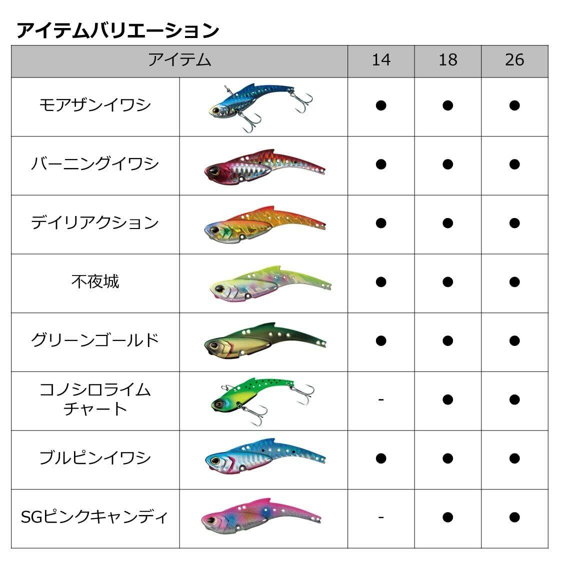 ● 特徴:14g/18g/26gの各種サイズ、バイブレーション設計、優れた耐久性と視認性、さまざまな釣り場での使用に最適