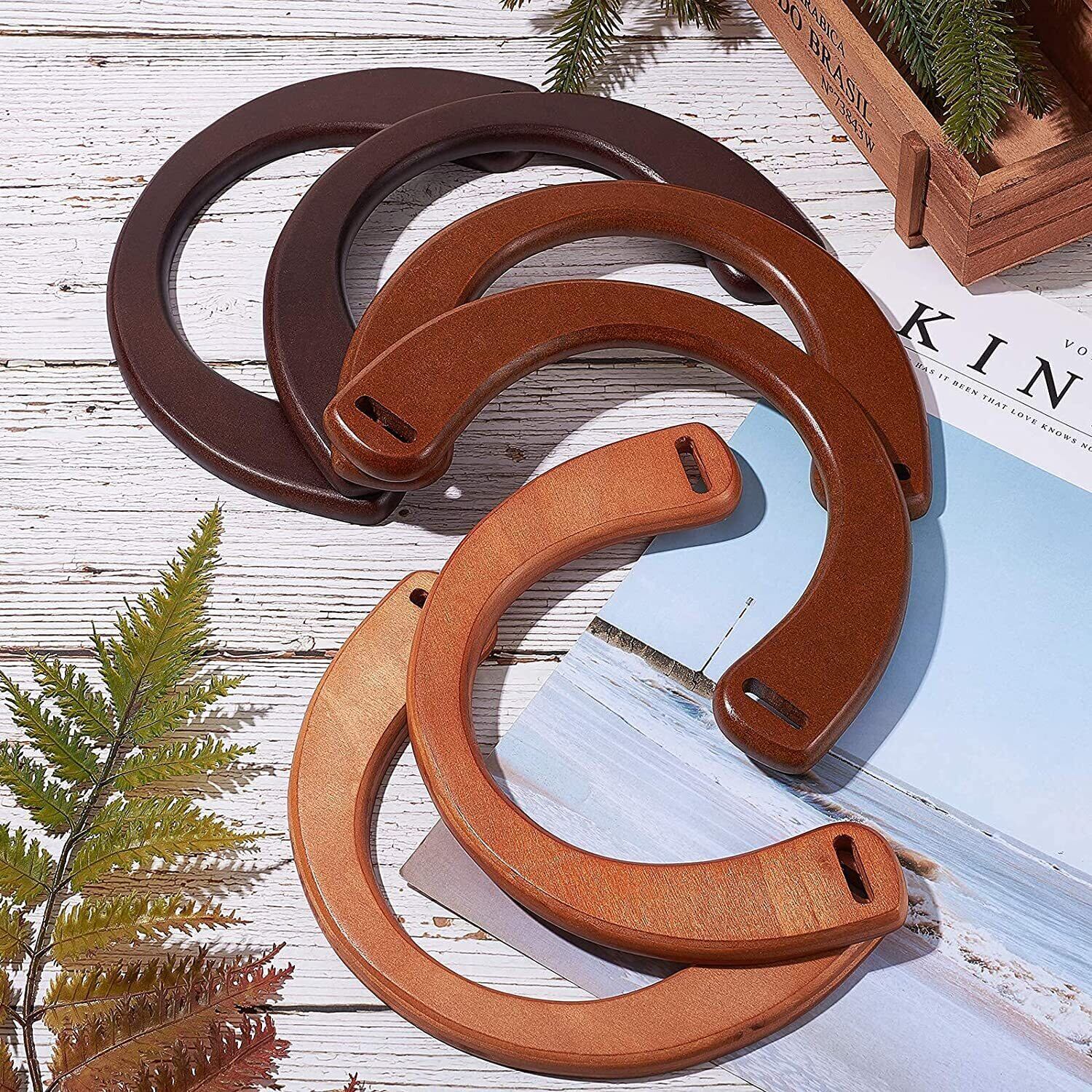 PH PandaHall 6個 木製持ち手 木工持ち手 バッグの持ち手 U形 木製 持ち手 取って ハンドメイド 修理 交換用 3色
