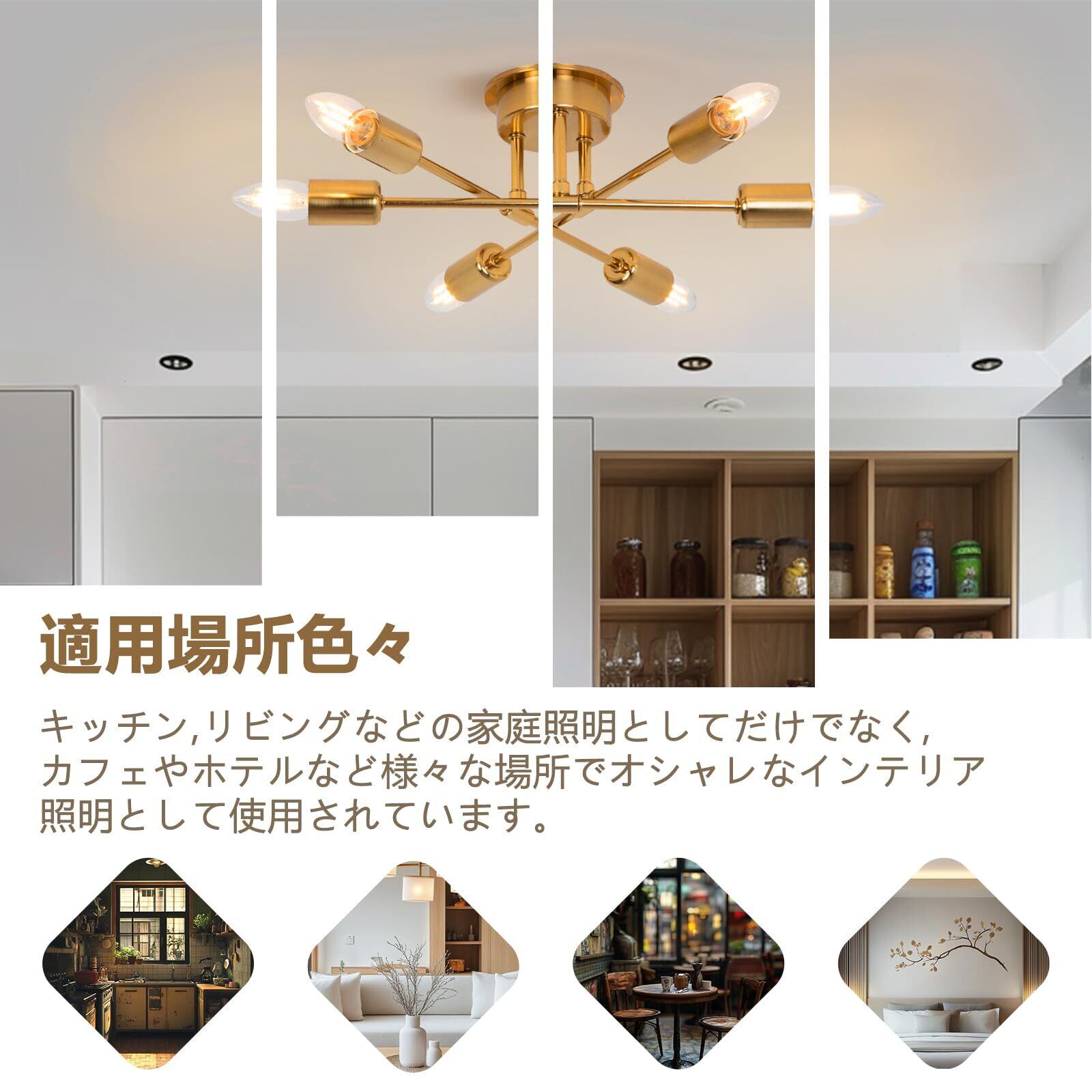 【6灯の明るさで心地よい空間を!】 : 6灯の明るい光が広がることで、6畳から8畳のお部屋を十分に照らします。LED電球対応で、エコで長寿命、経済的な照明を楽しめます。夜のお食事やリラックスタイムを明るく優雅に演出し、居心地の良い空間を提供します。