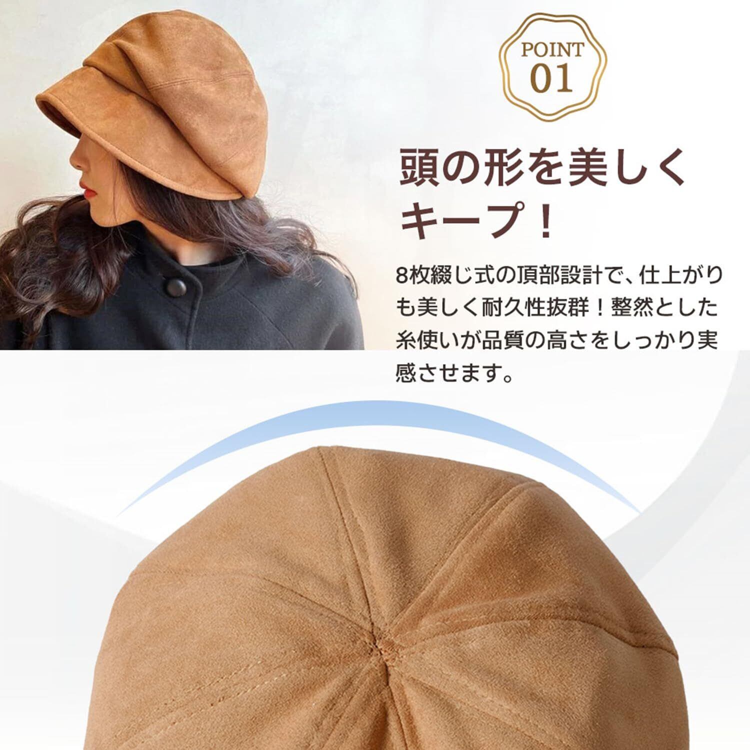 [SUBTRY] 帽子 レディース【圧倒的な小顔効果・お肌に優しい鹿革ベルベット保温素材・防寒防風】 キャスケット 柔らかい サイズ調整可能 2層構造 通気 吸汗 キャップ 無地 春