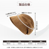 【簡単サイズ調節・小顔効果抜群】:頭周り:約53~58cm。つば約6.5cm、小顔効果もばつぐん。帽子の内側にアジャスター(マジックテープ)がついているので、サイズの微調整が可能です。8枚綴じ式の頂部設計で、仕上がりも美しく耐久性抜群!整然とした糸使いが品質の高さをしっかり実感させます。後ろのタック部分が頭の形をうまくカバーし、かぶるだけで綺麗なシルエットに。かぶり口のロールでボリューム感が出て小顔効果抜群。