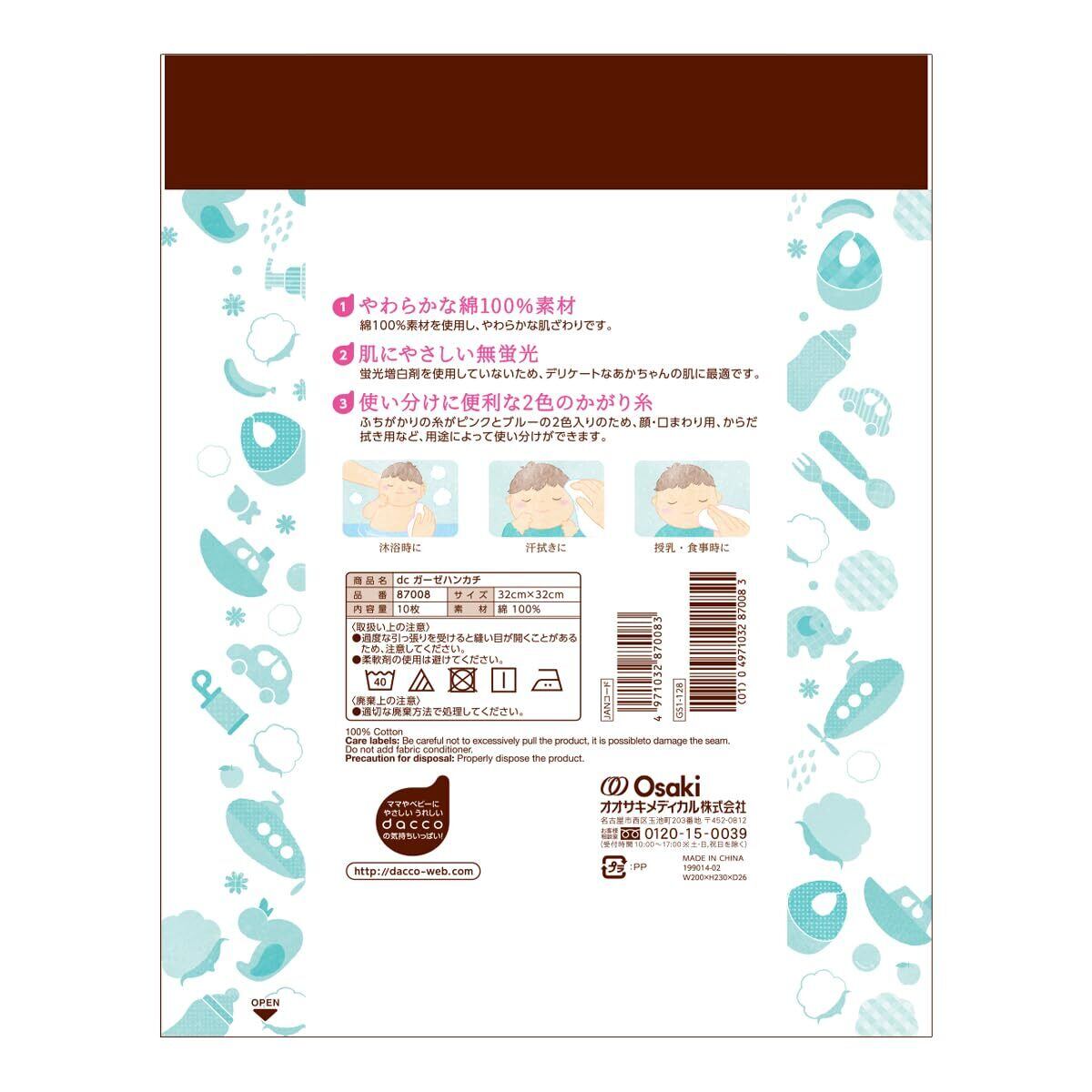 dacco(ダッコ) ガーゼハンカチ 10枚入 無蛍光 綿100% 87008