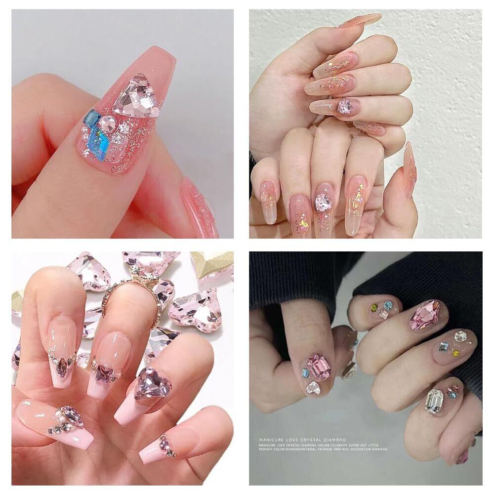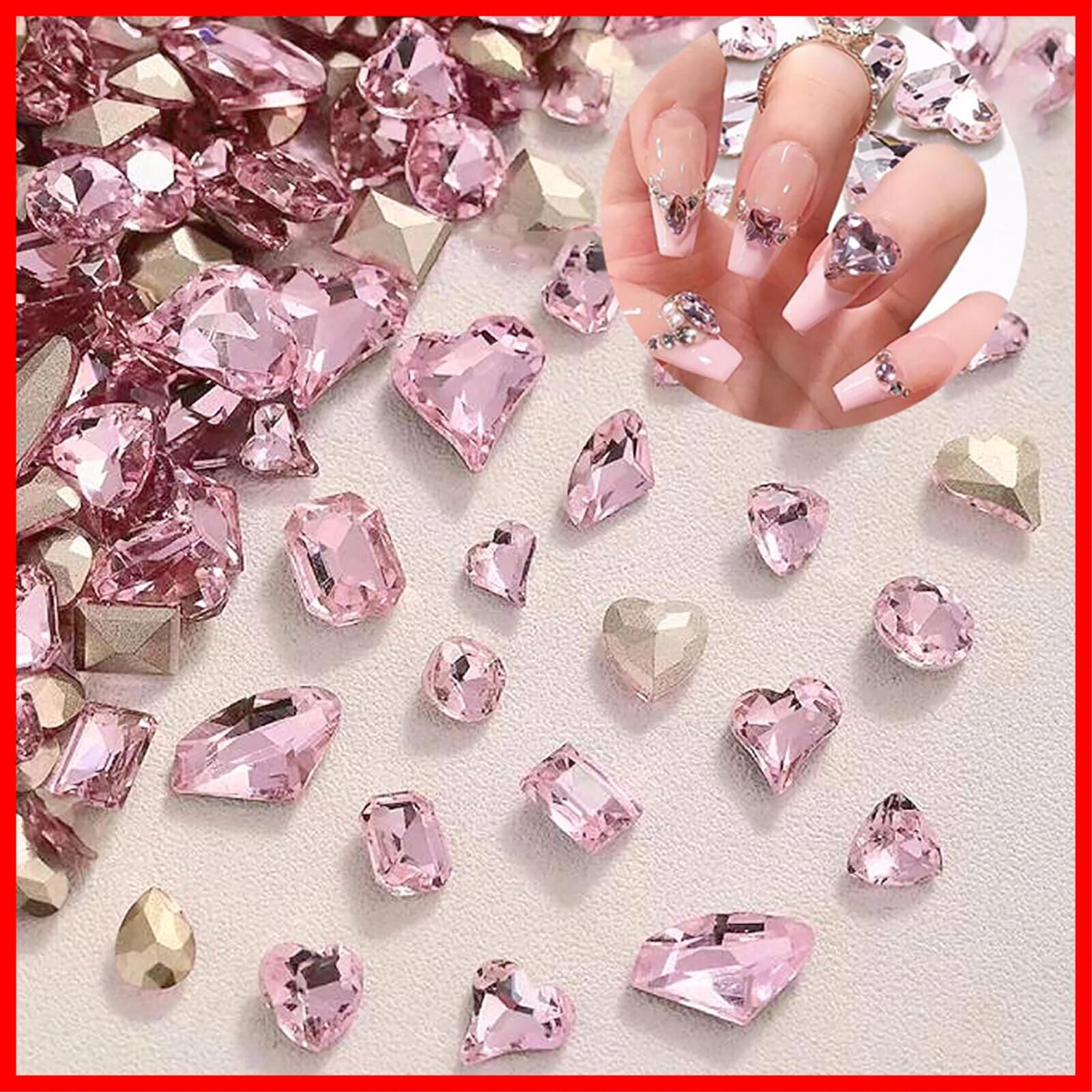 GOODCHI ネイルパーツ ピンク オーロラストーン アクリルストーン ネイルパーツ キラキラ クリスタル ハートストーン ラインストーン キュートハート型 8mm 11mm 50個 ネイルストーン | hananoki